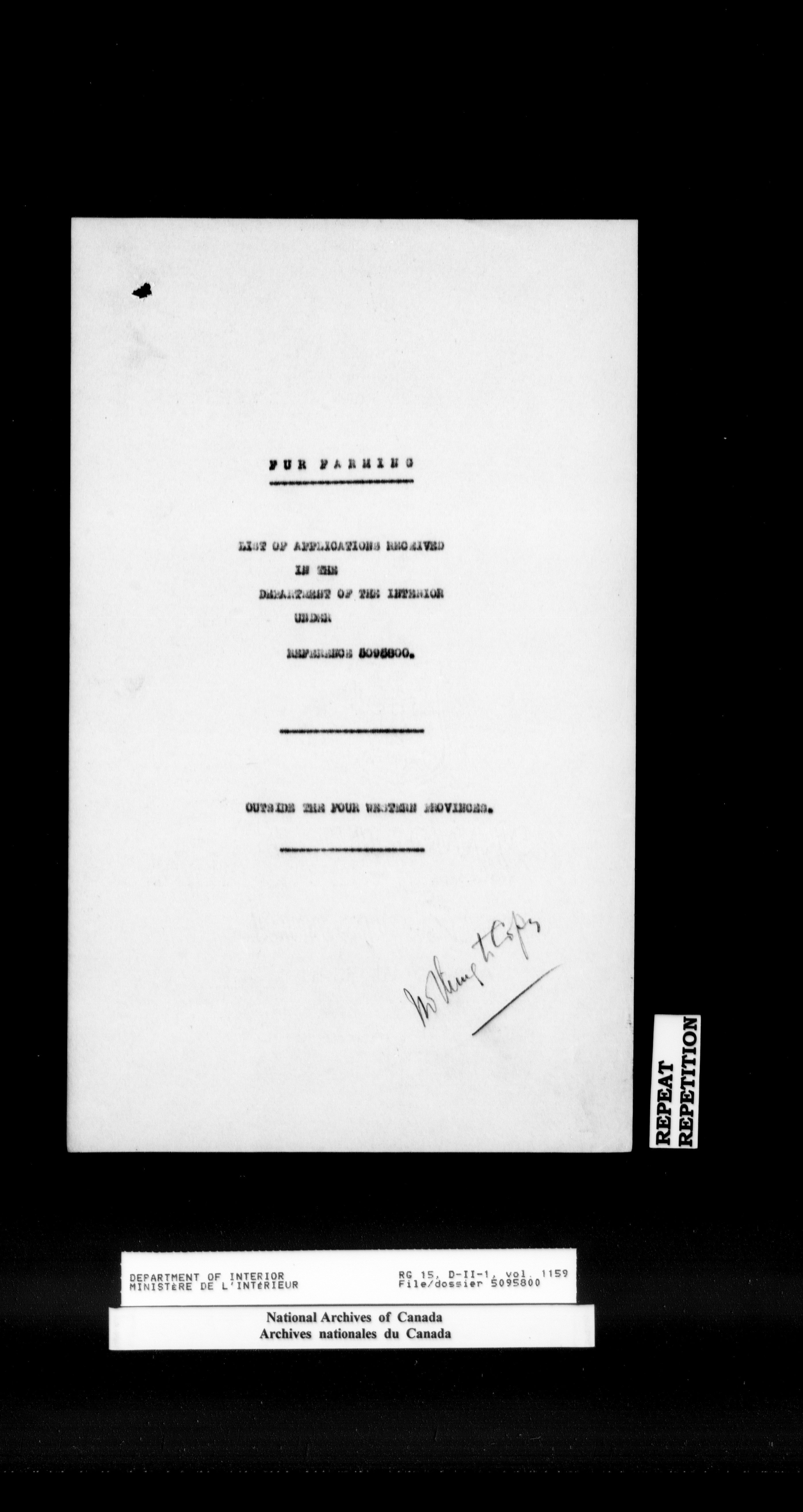 Central registry subject files created by the Dominion Lands Branch - 15528
