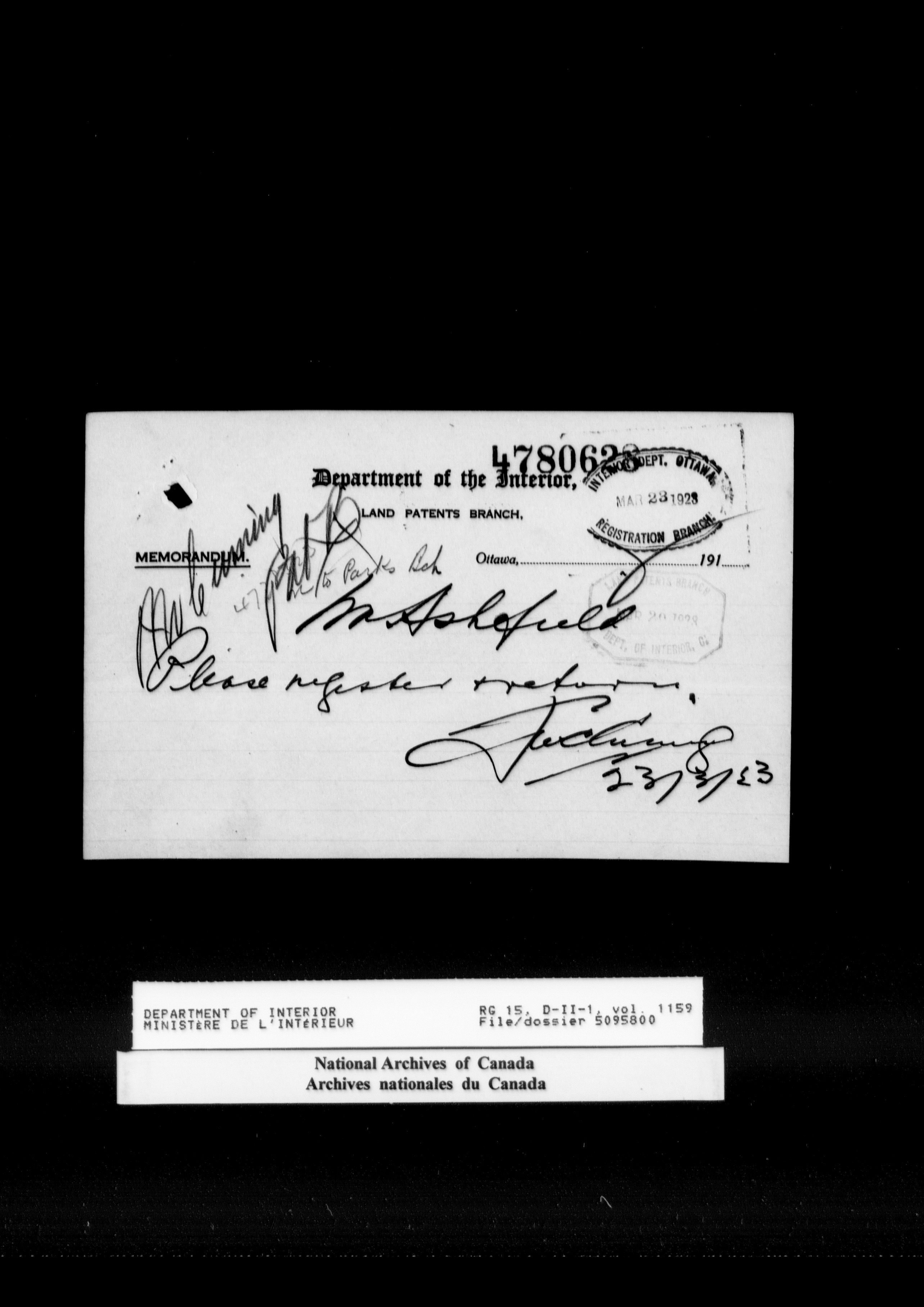 Central registry subject files created by the Dominion Lands Branch - 15528