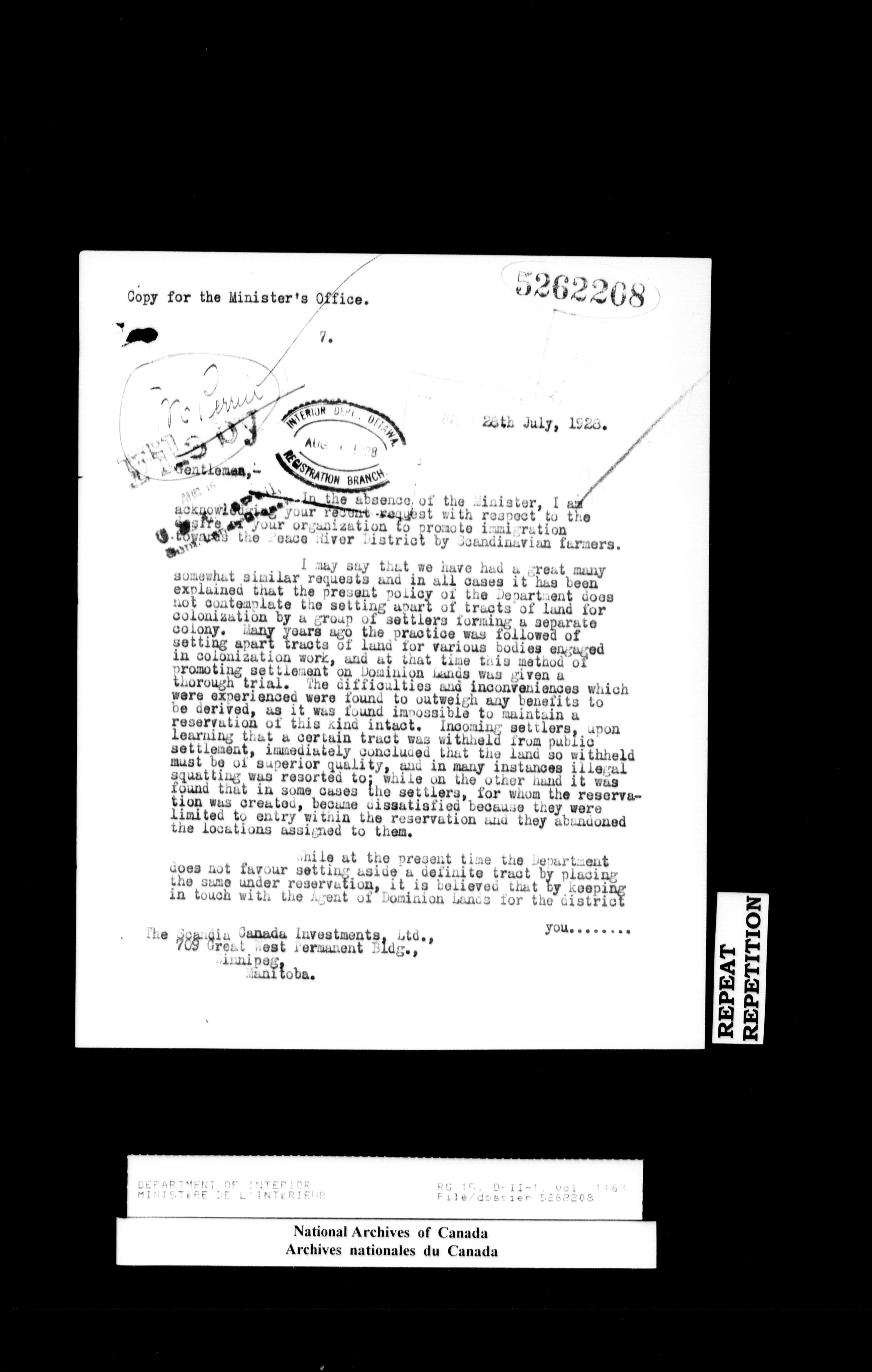 Central registry subject files created by the Dominion Lands Branch - 15531
