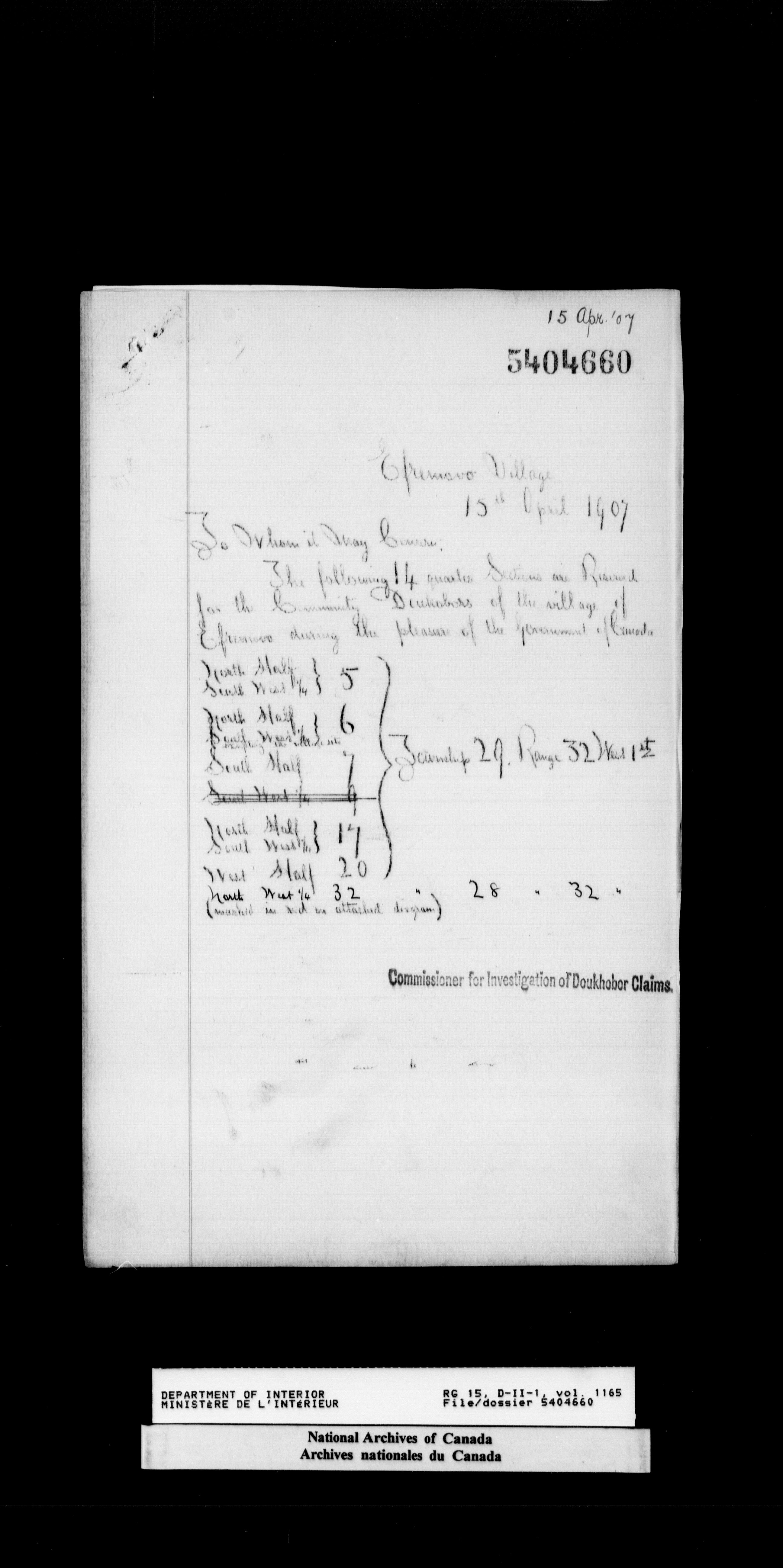 Central registry subject files created by the Dominion Lands Branch - 15532