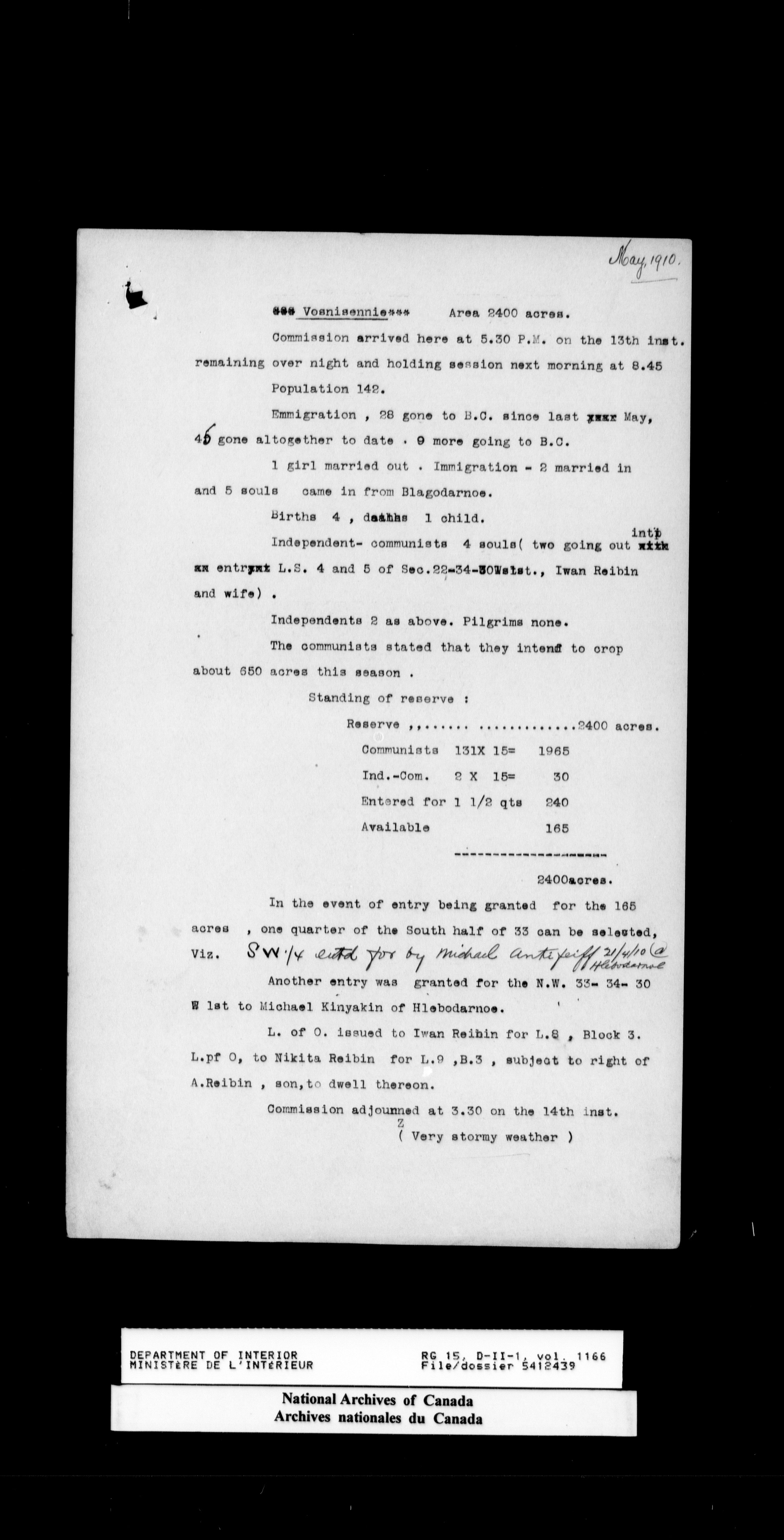 Central registry subject files created by the Dominion Lands Branch - 15534