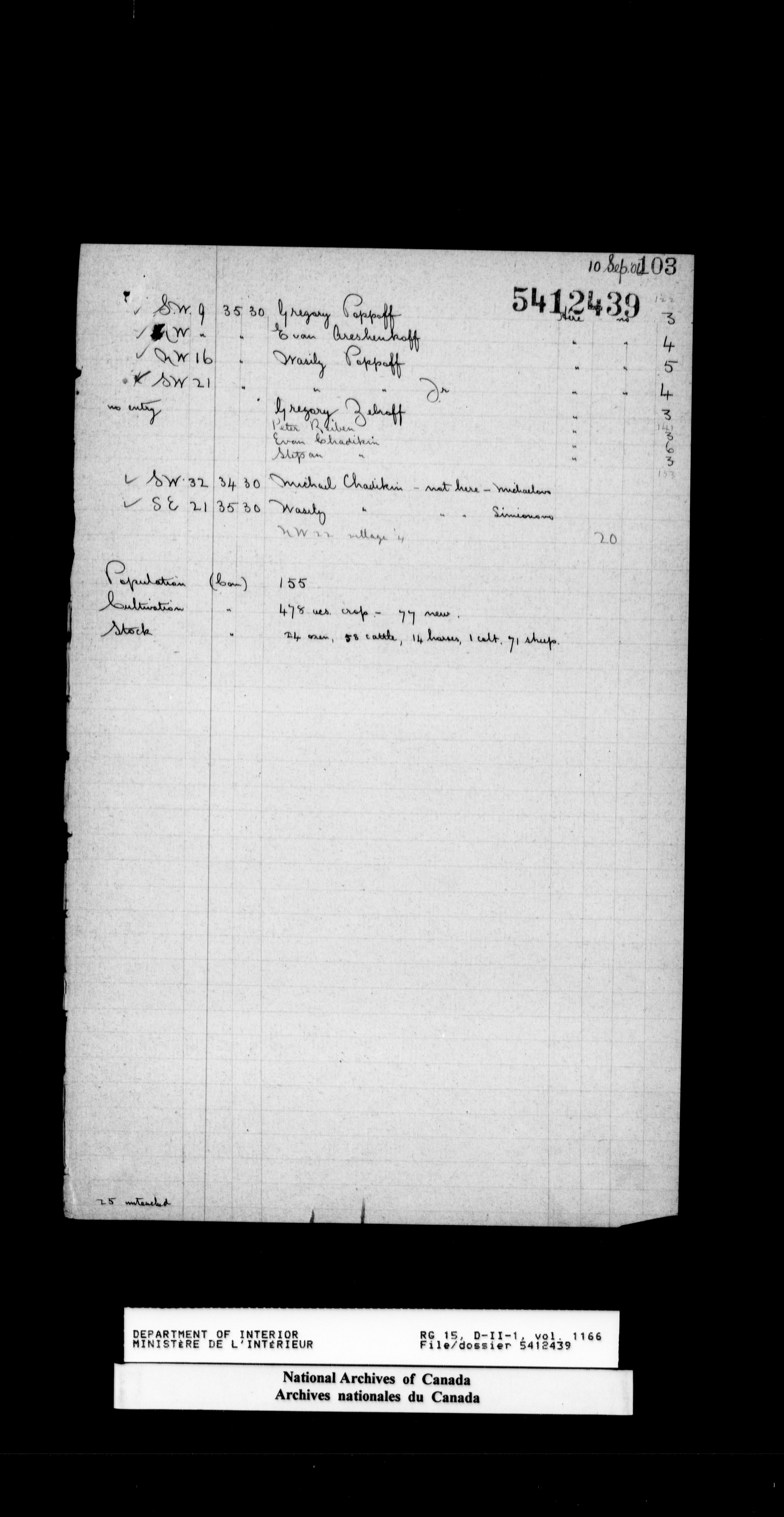 Central registry subject files created by the Dominion Lands Branch - 15534
