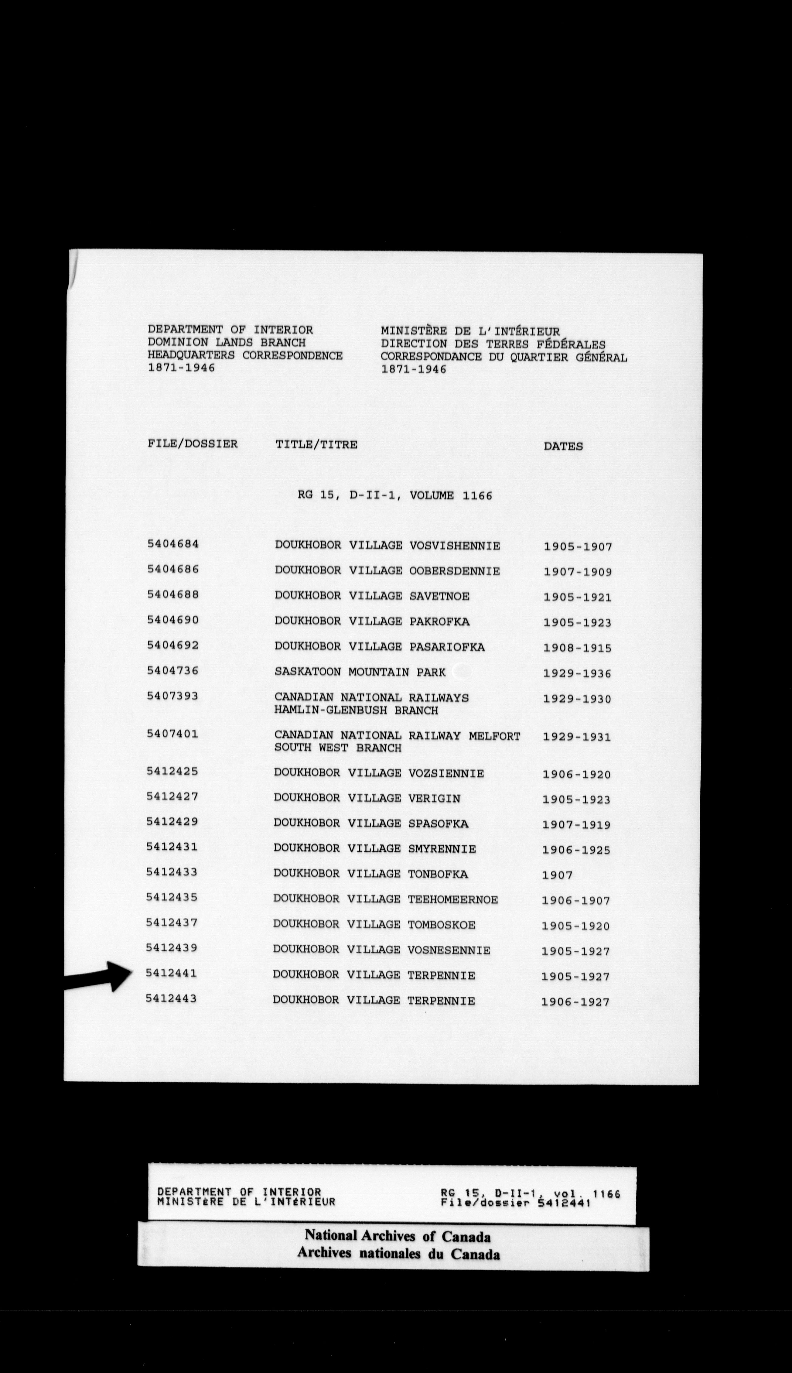Central registry subject files created by the Dominion Lands Branch - 15534