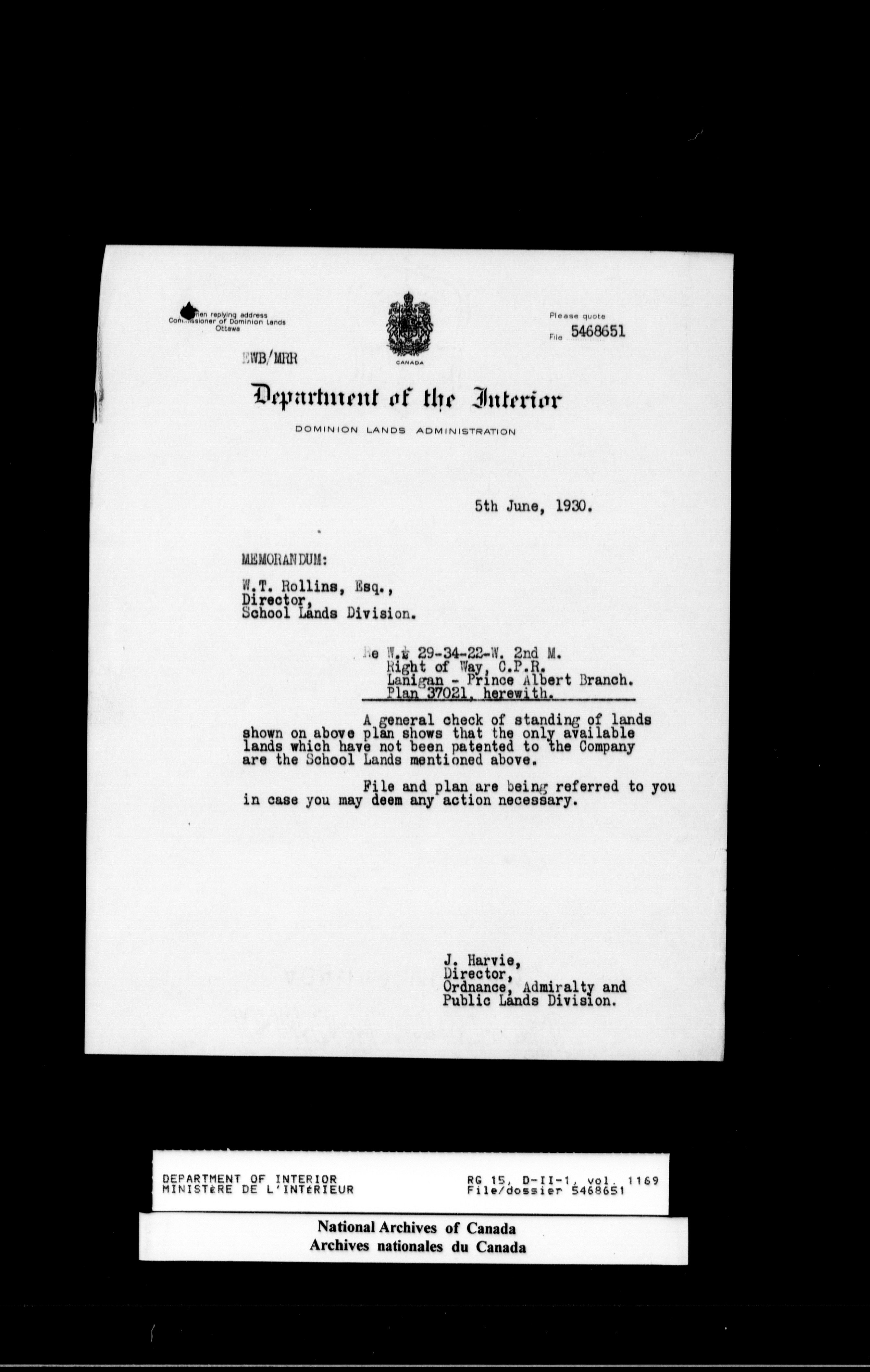 Central registry subject files created by the Dominion Lands Branch - 15536