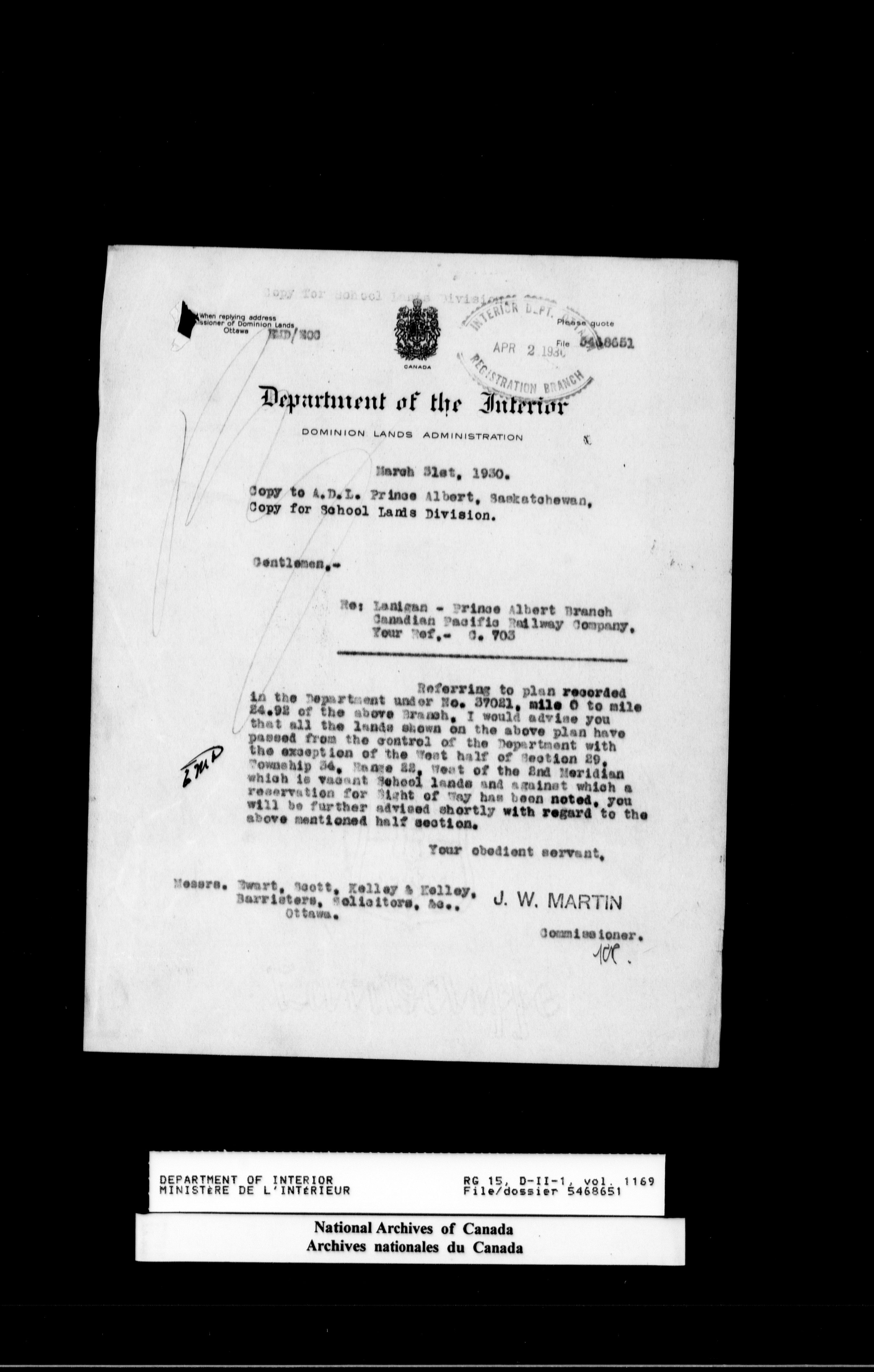 Central registry subject files created by the Dominion Lands Branch - 15536
