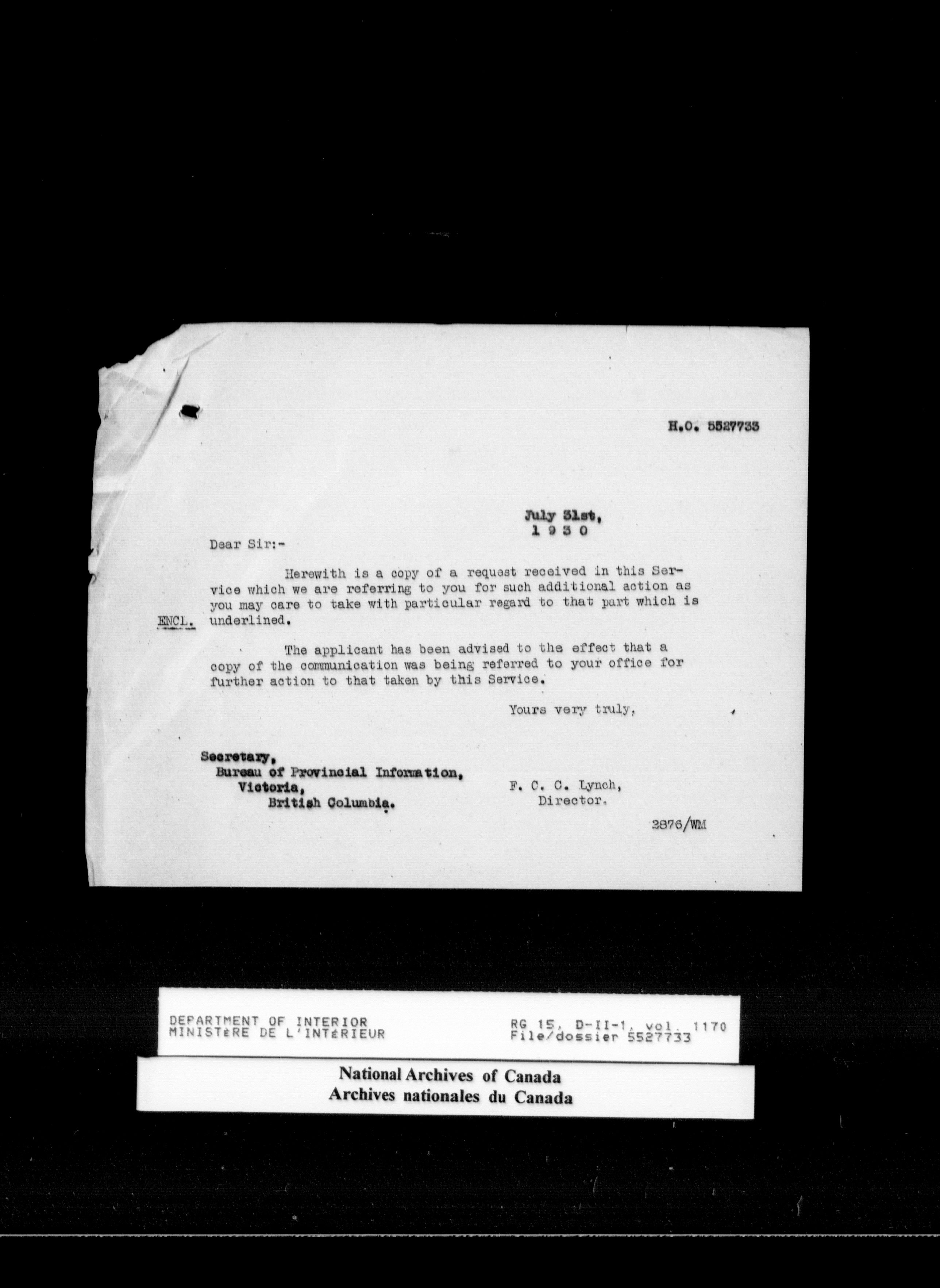Central registry subject files created by the Dominion Lands Branch - 15537