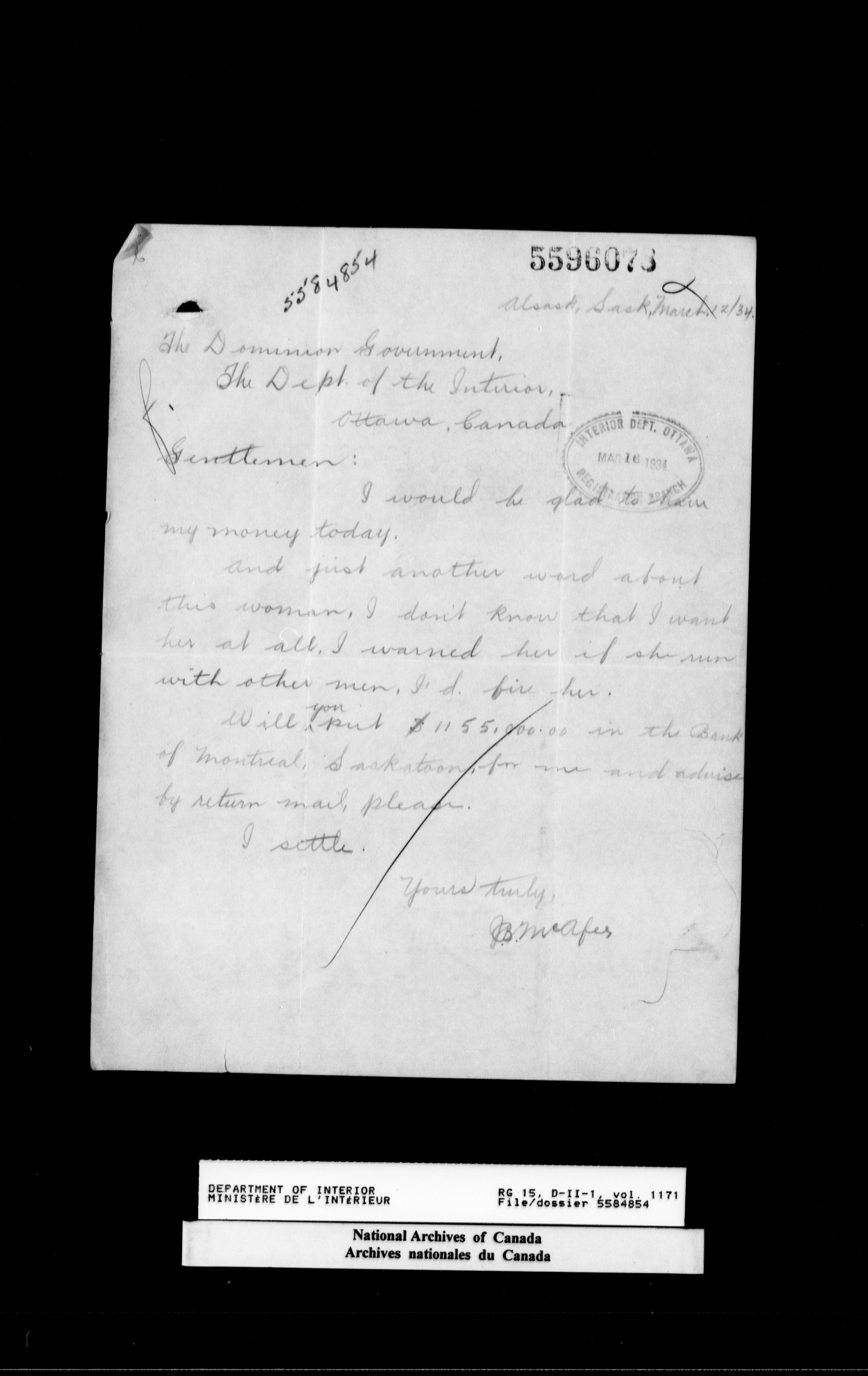 Central registry subject files created by the Dominion Lands Branch - 15538