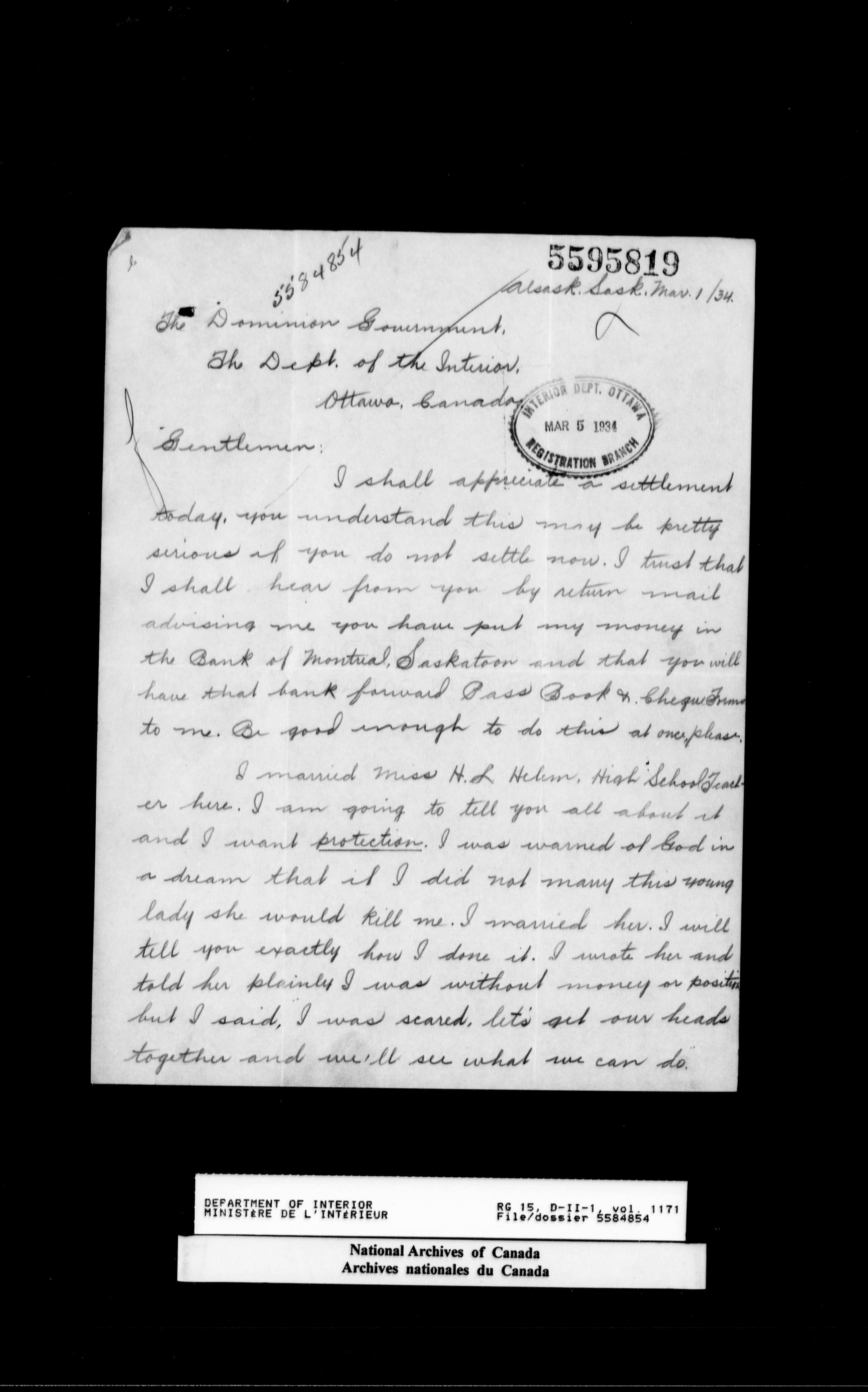 Central registry subject files created by the Dominion Lands Branch - 15538