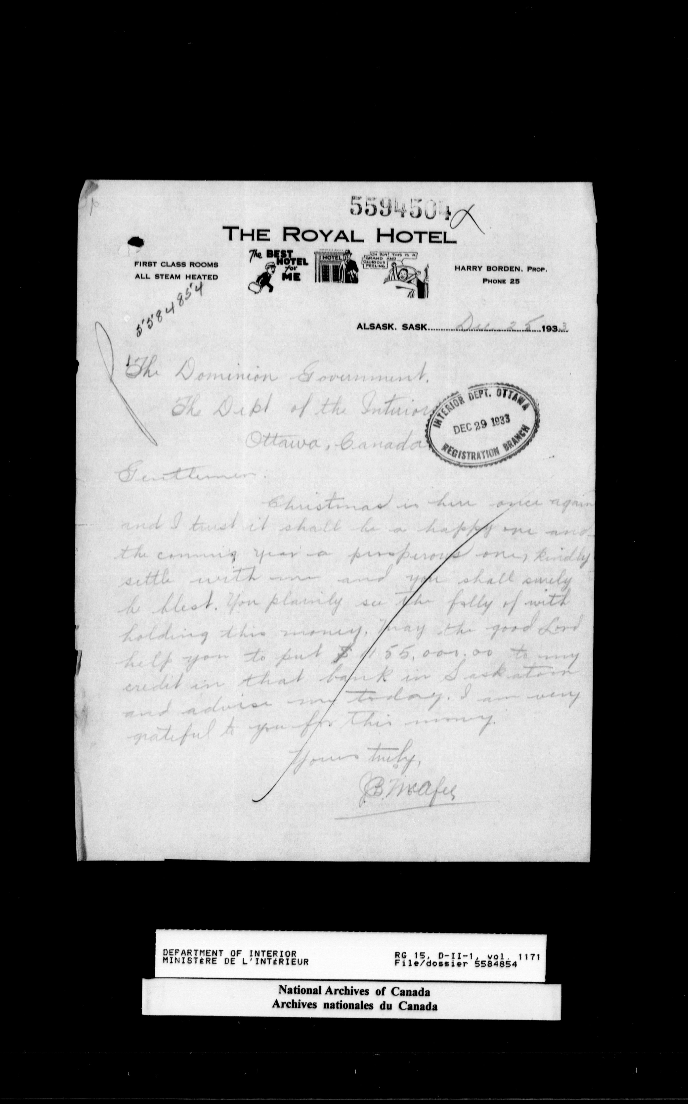 Central registry subject files created by the Dominion Lands Branch - 15538
