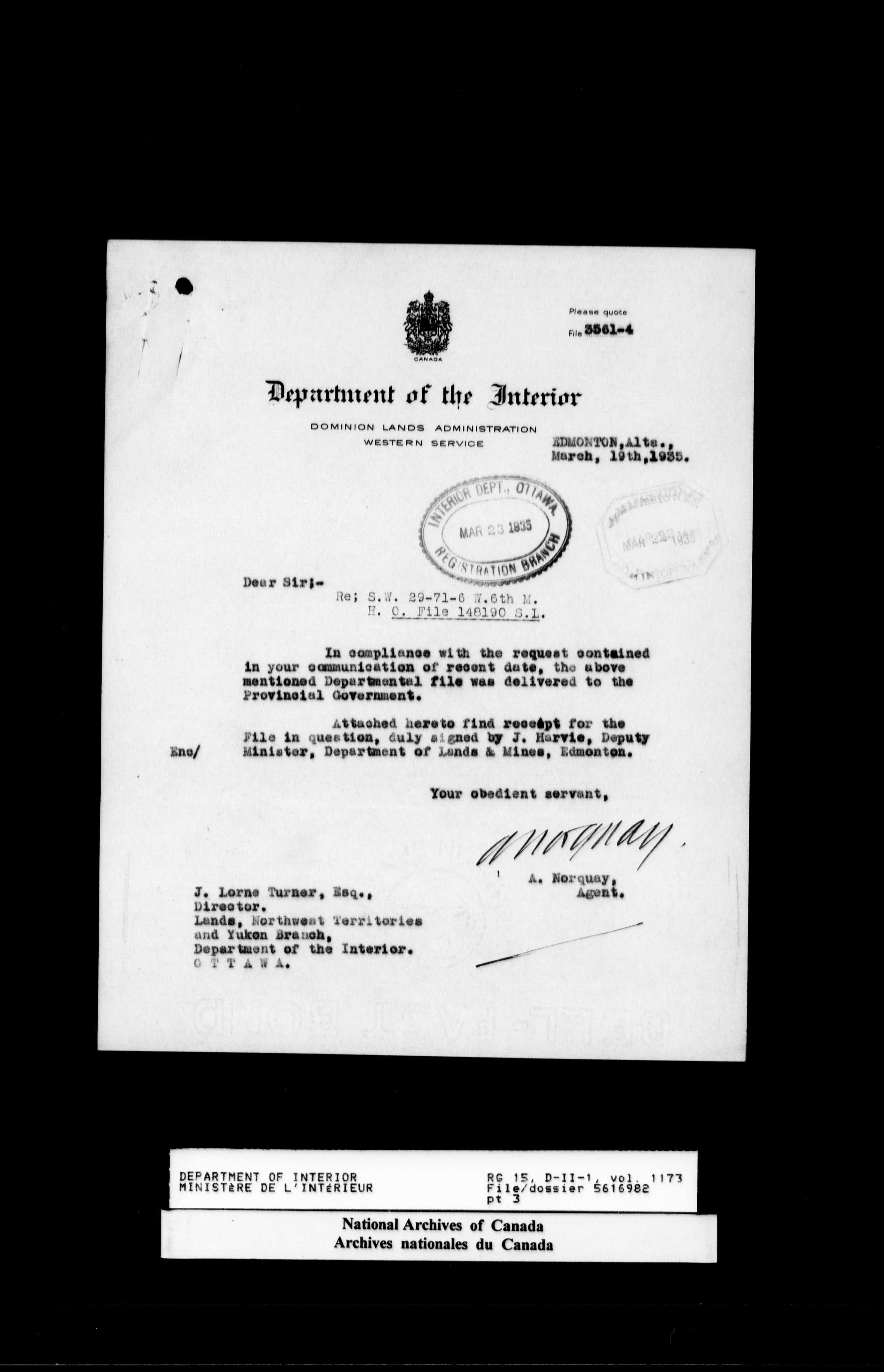Central registry subject files created by the Dominion Lands Branch - 15539