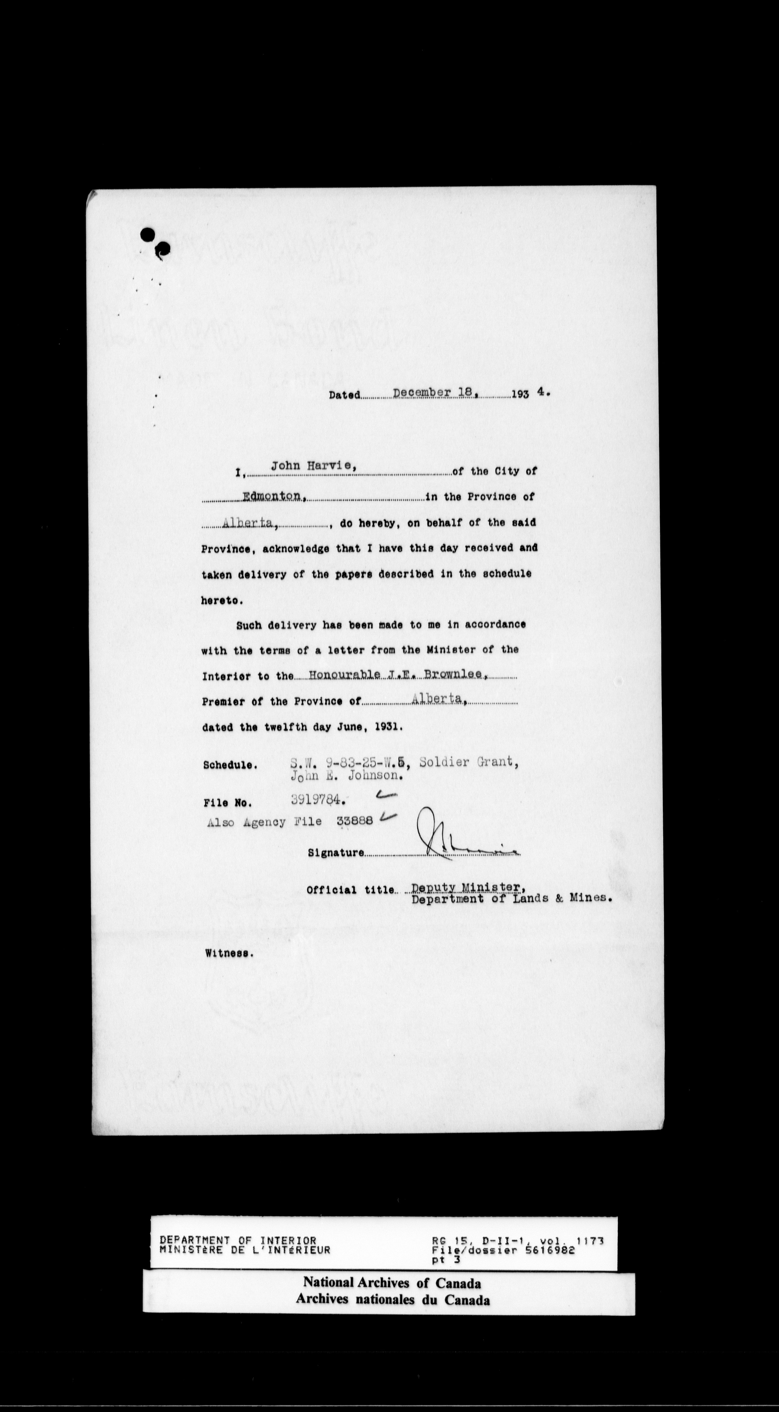 Central registry subject files created by the Dominion Lands Branch - 15539