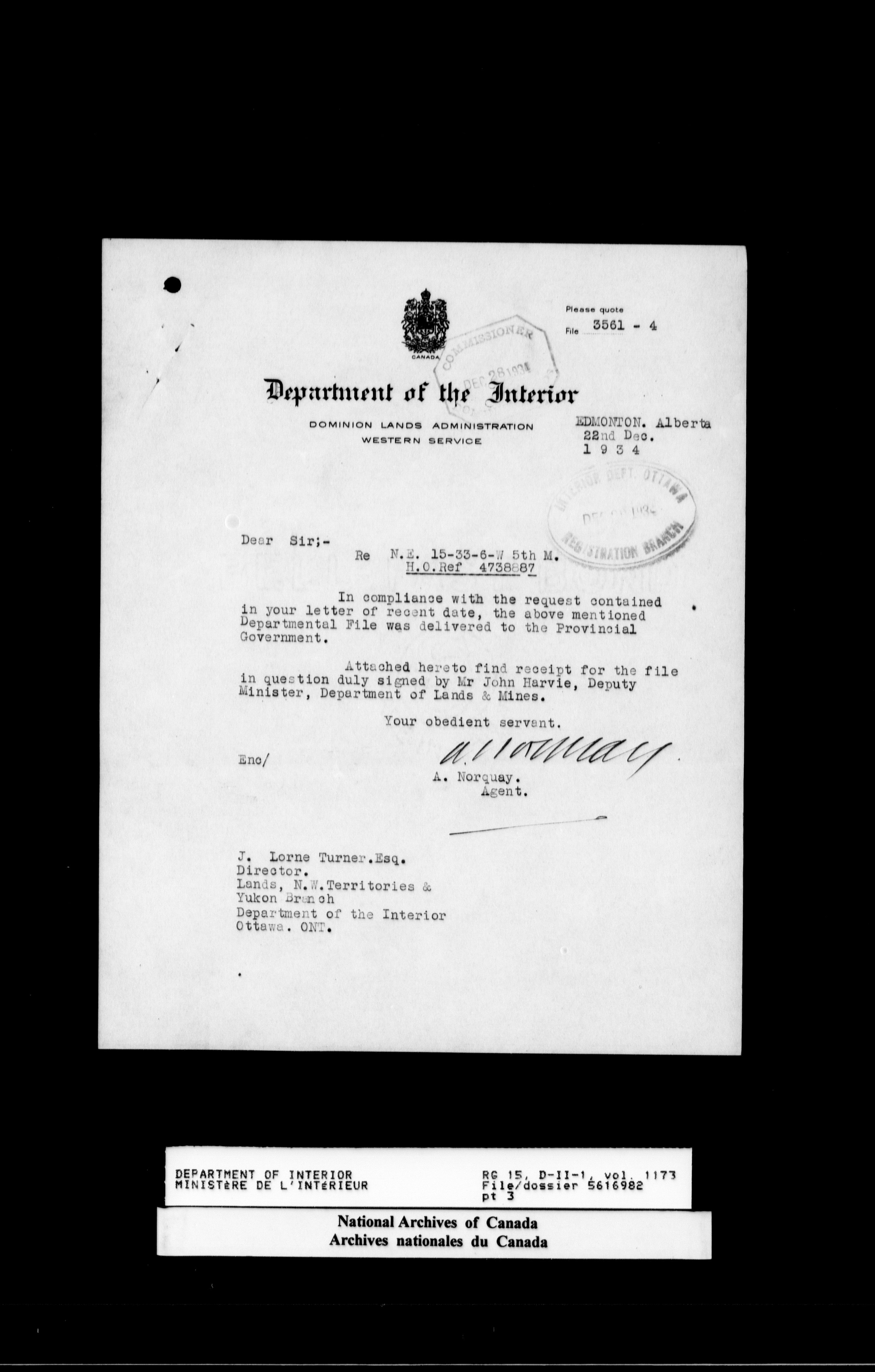 Central registry subject files created by the Dominion Lands Branch - 15539