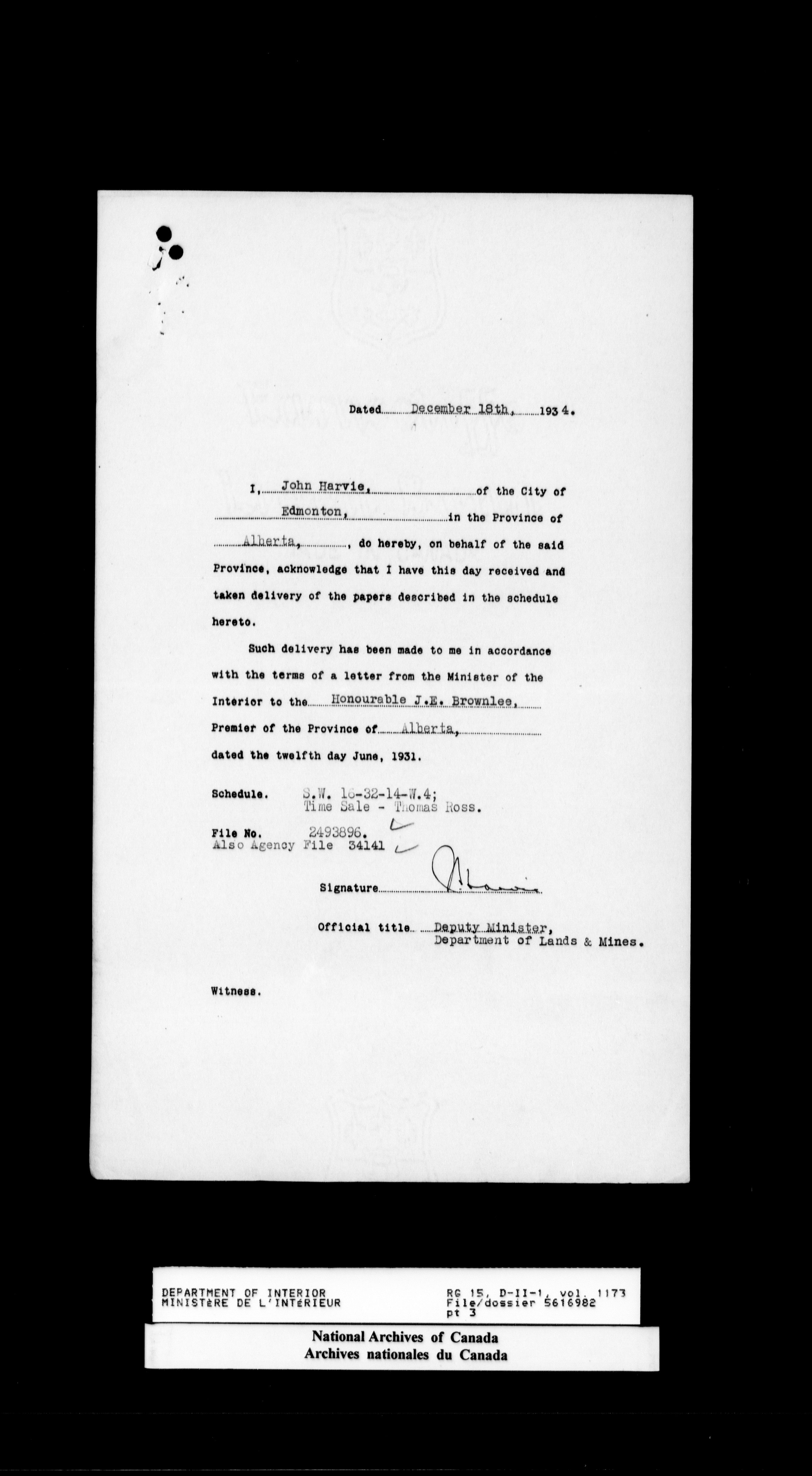 Central registry subject files created by the Dominion Lands Branch - 15539