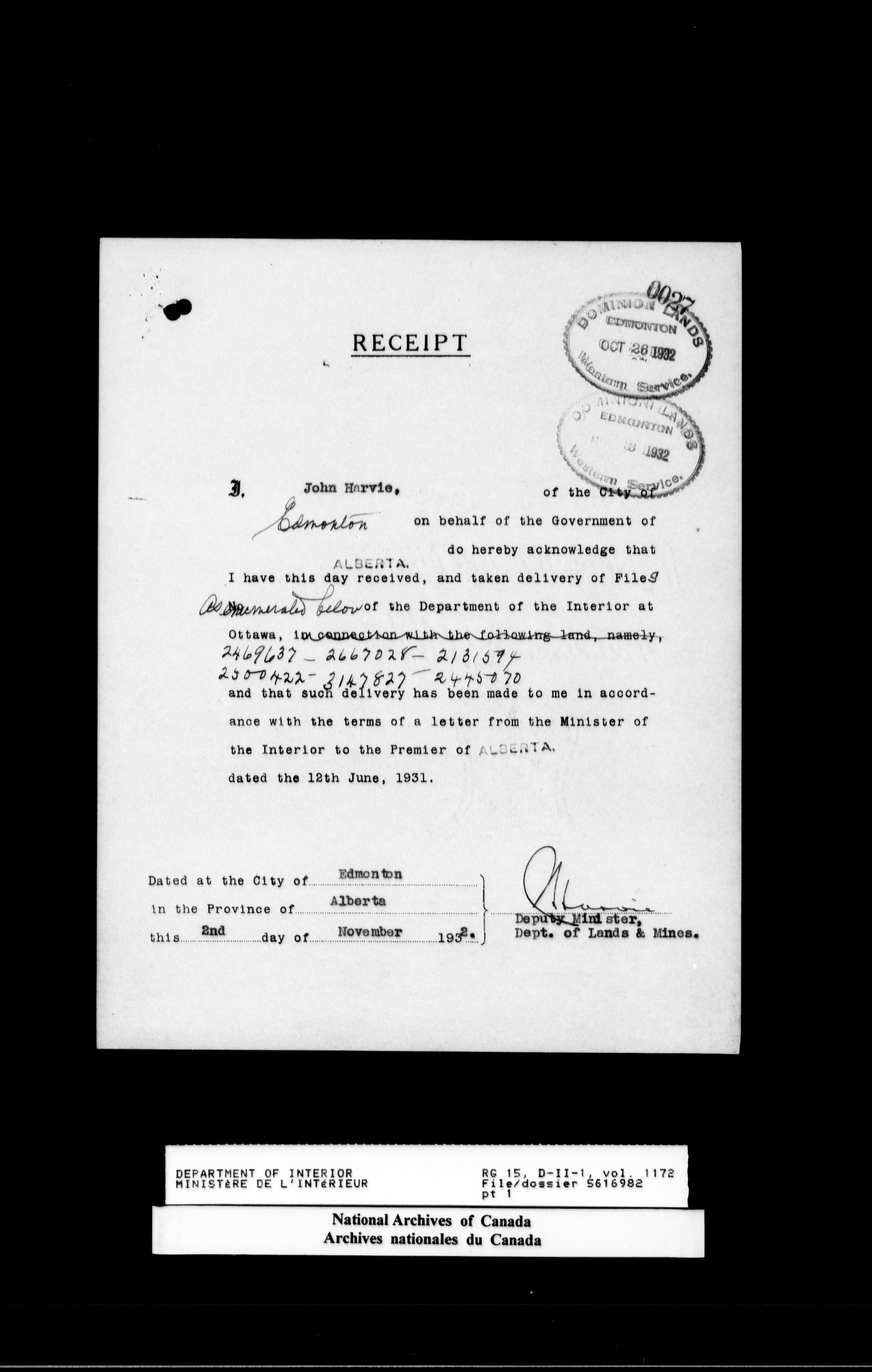 Central registry subject files created by the Dominion Lands Branch - 15539