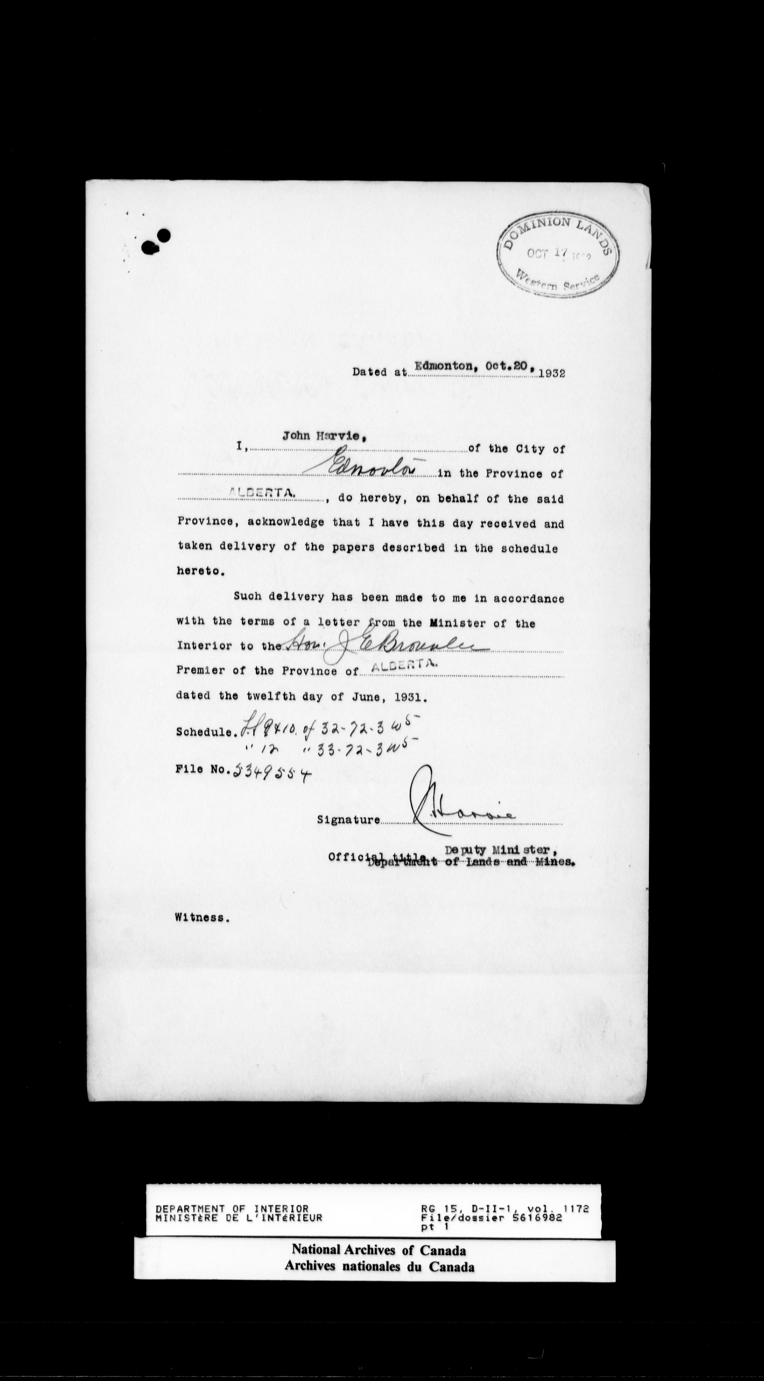 Central registry subject files created by the Dominion Lands Branch - 15539