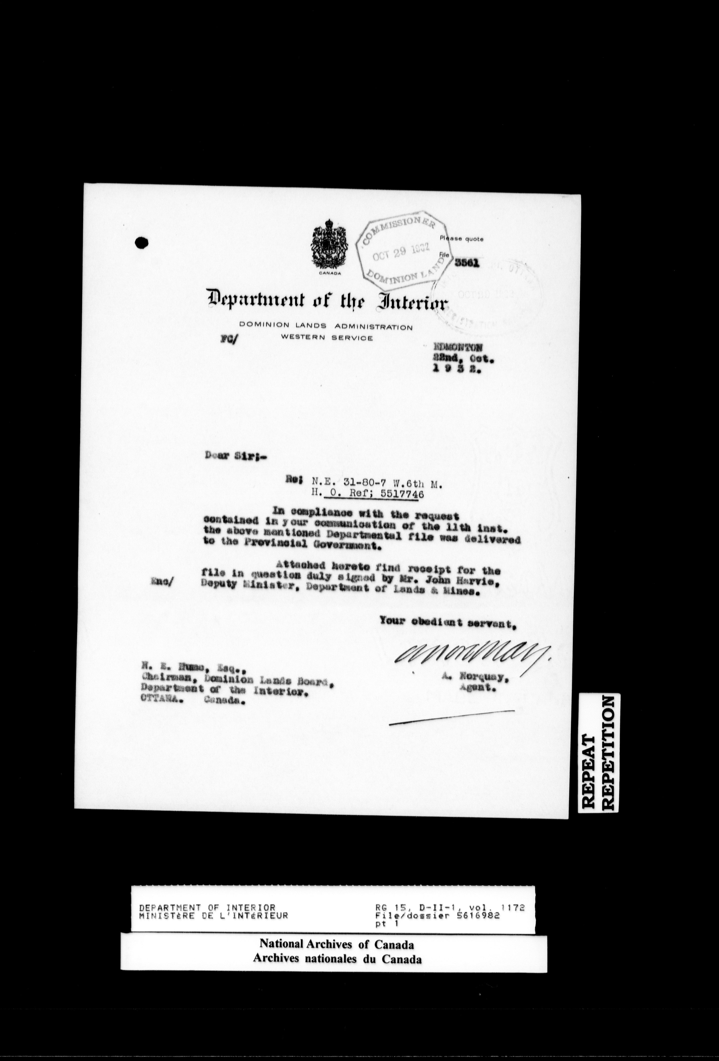 Central registry subject files created by the Dominion Lands Branch - 15539