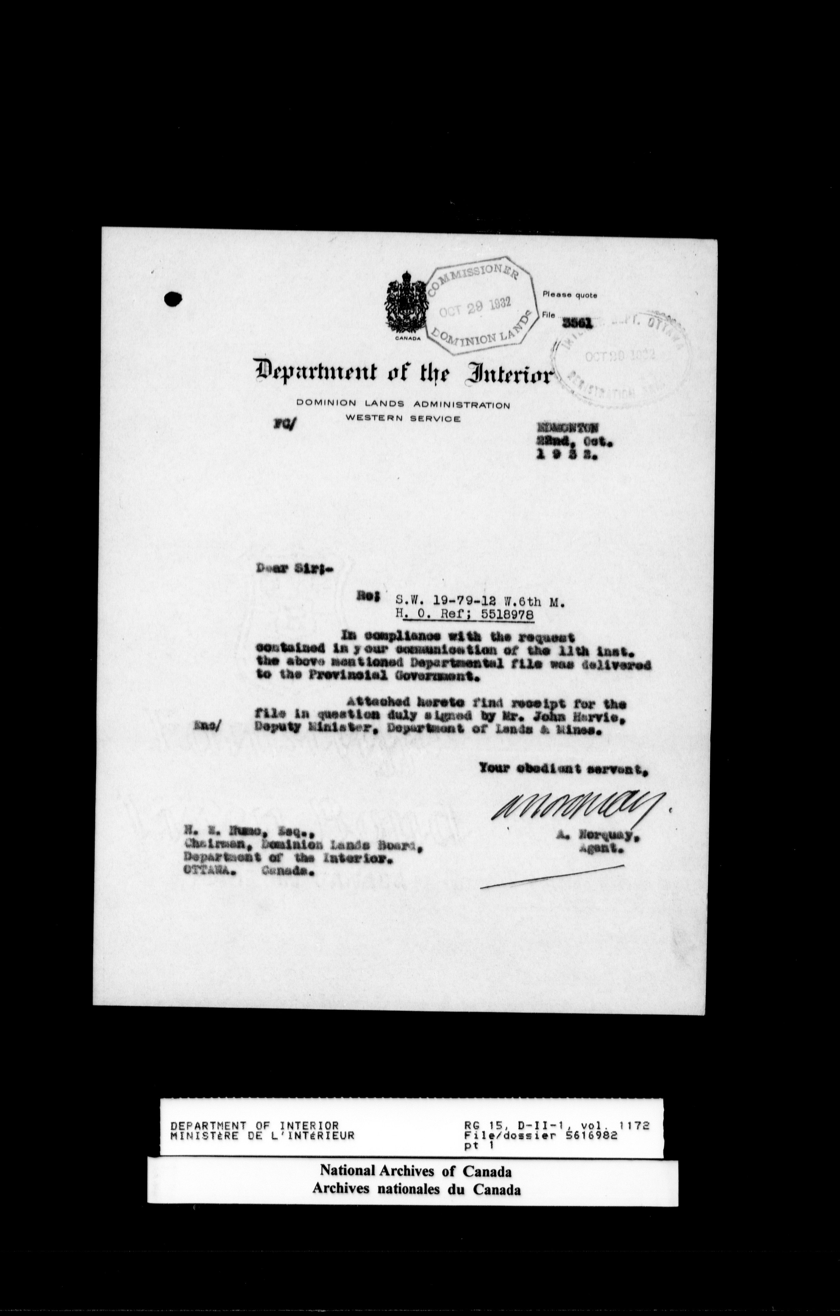 Central registry subject files created by the Dominion Lands Branch - 15539