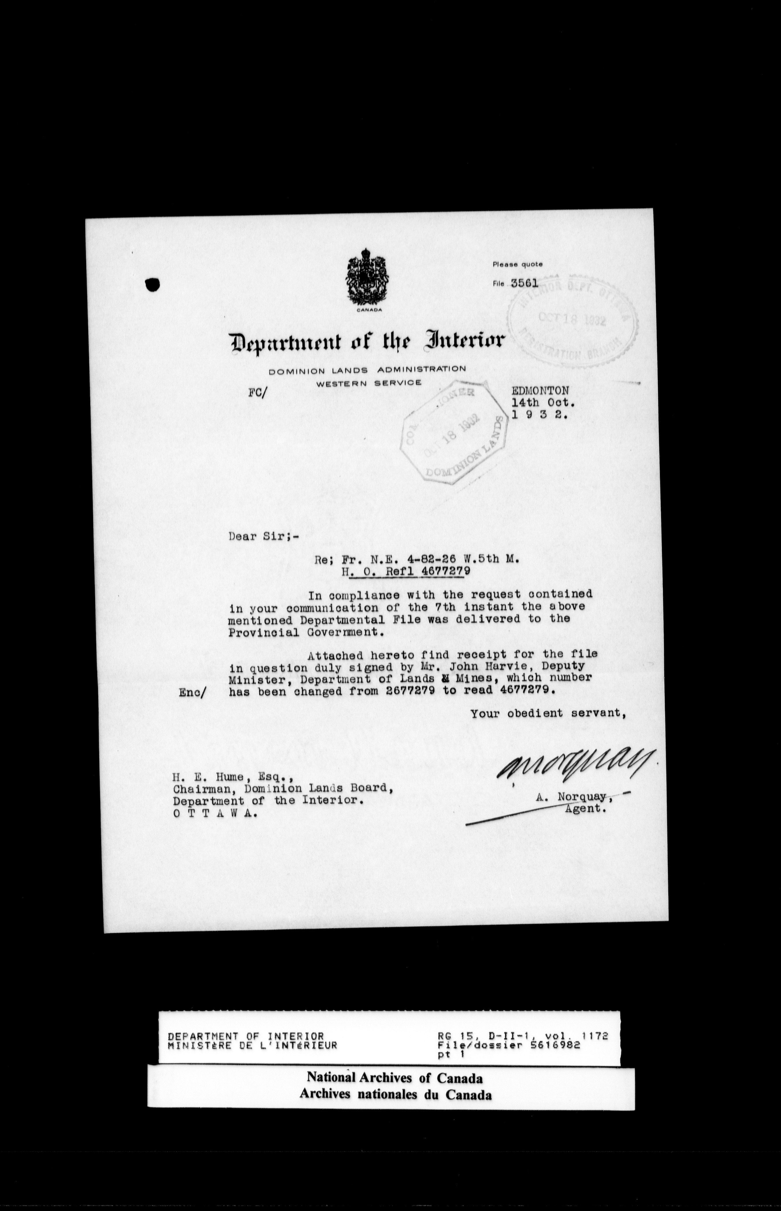 Central registry subject files created by the Dominion Lands Branch - 15539