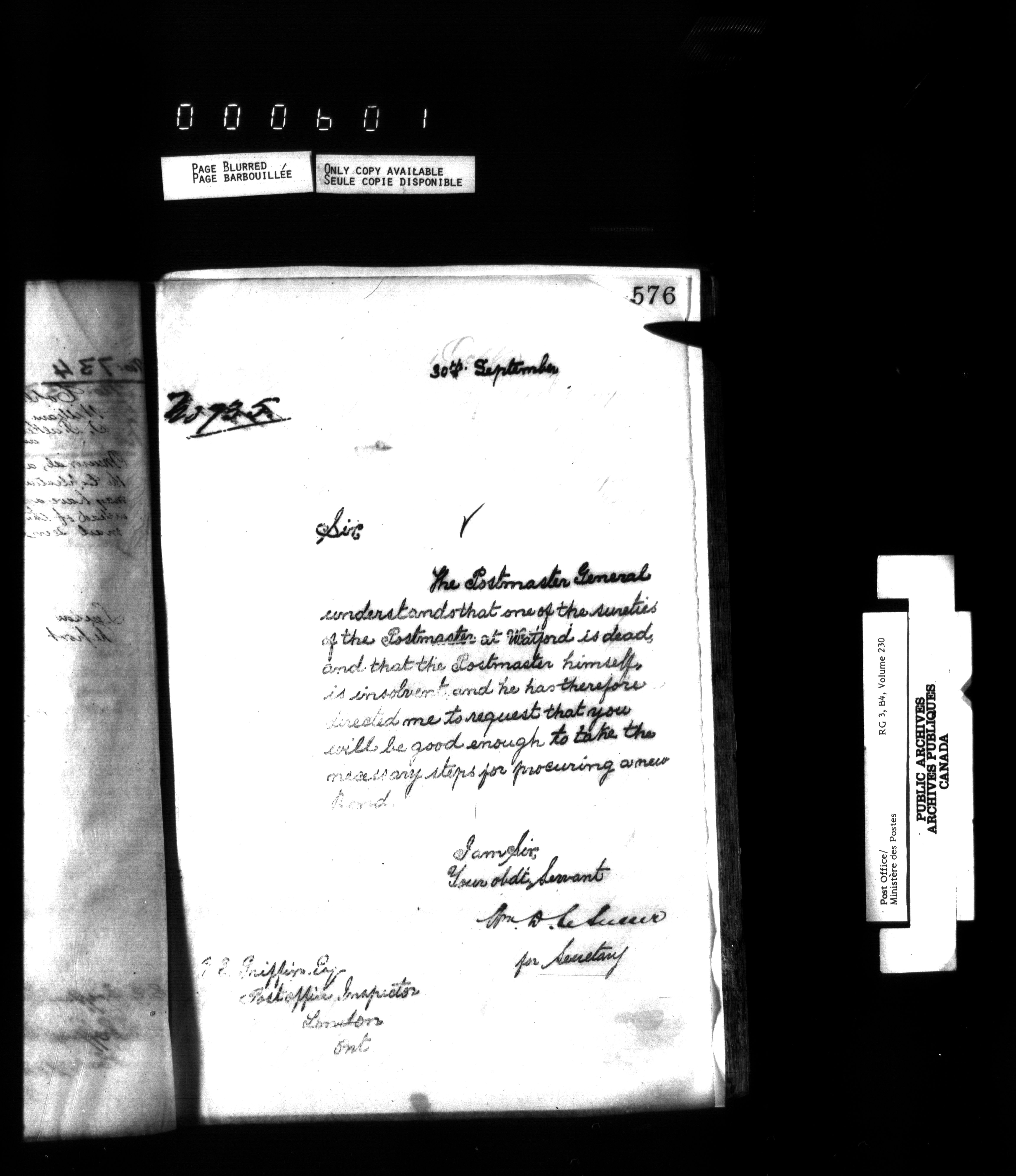 Deputy Postmaster General : correspondence addressed to the Post Office Inspectors, 1851-1902 - 1554