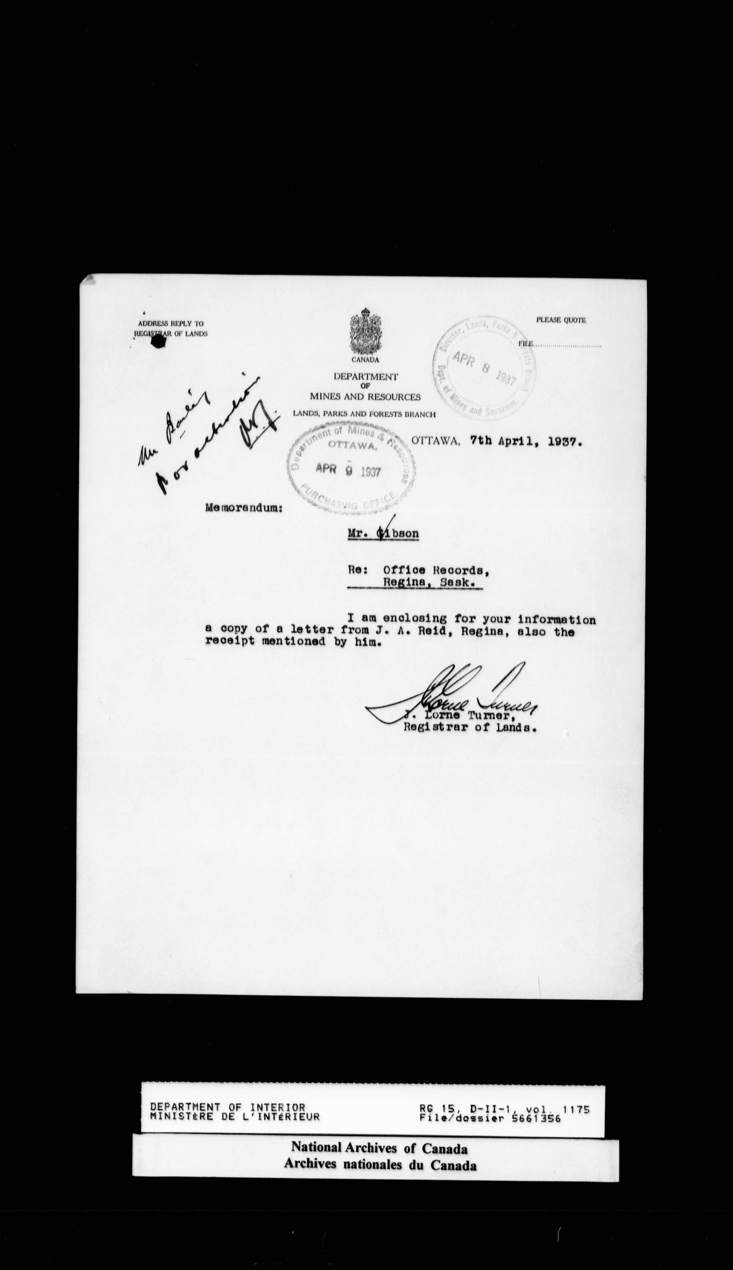 Central registry subject files created by the Dominion Lands Branch - 15541