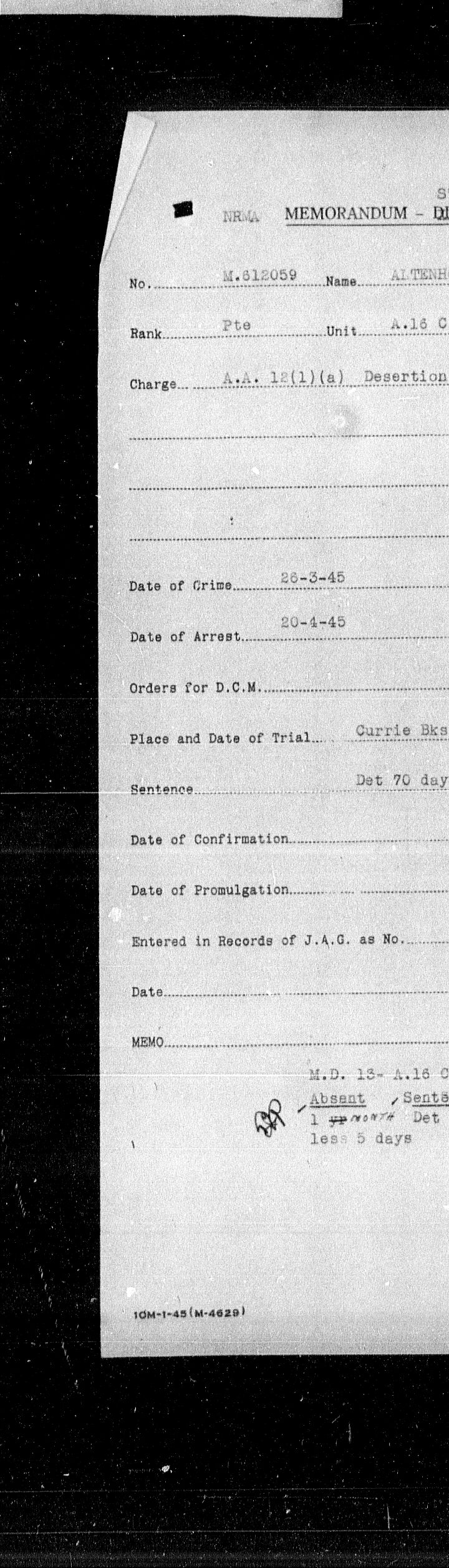 Canadian Army Courts Martial documents (1939-1945) - 15547