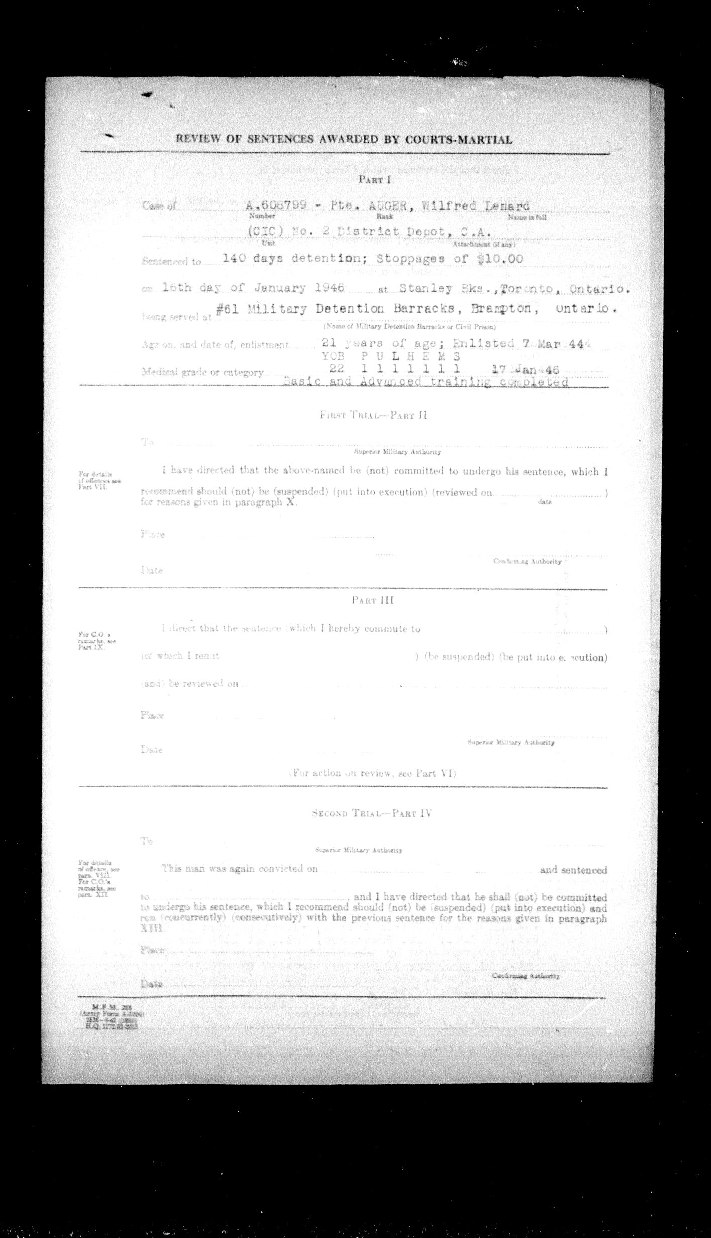 Canadian Army Courts Martial documents (1939-1945) - 15550