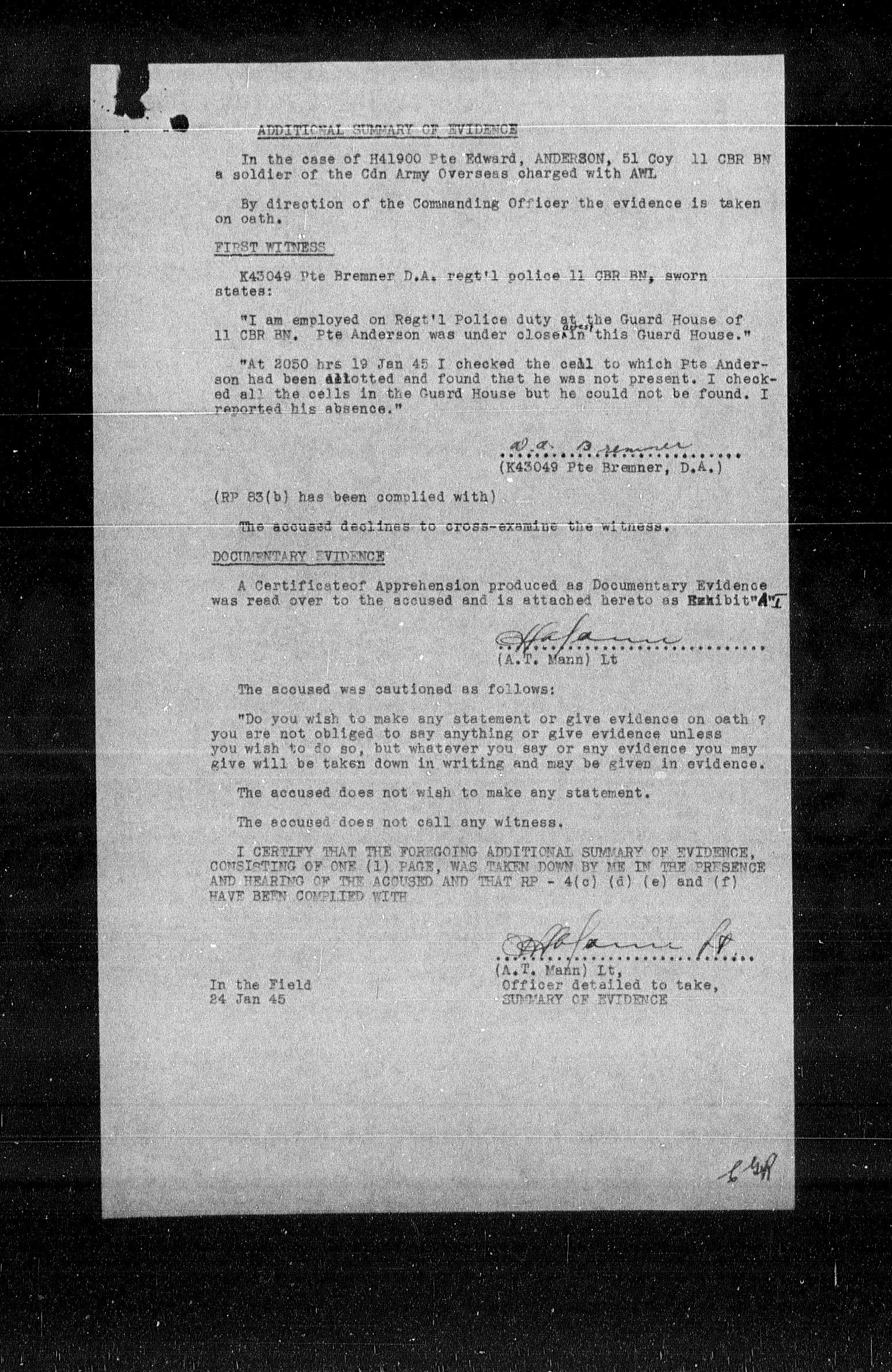 Canadian Army Courts Martial documents (1939-1945) - 15552