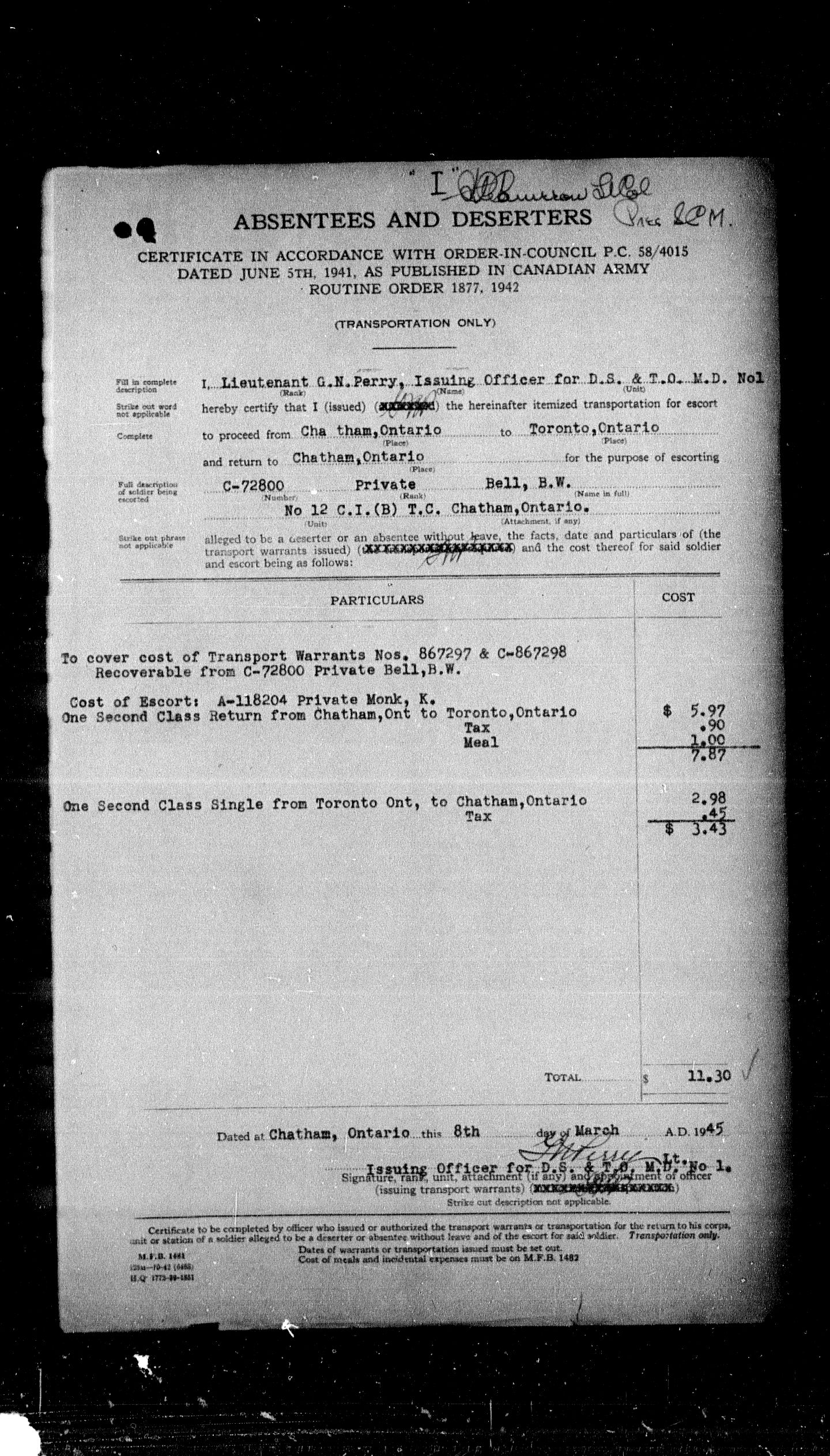 Canadian Army Courts Martial documents (1939-1945) - 15557