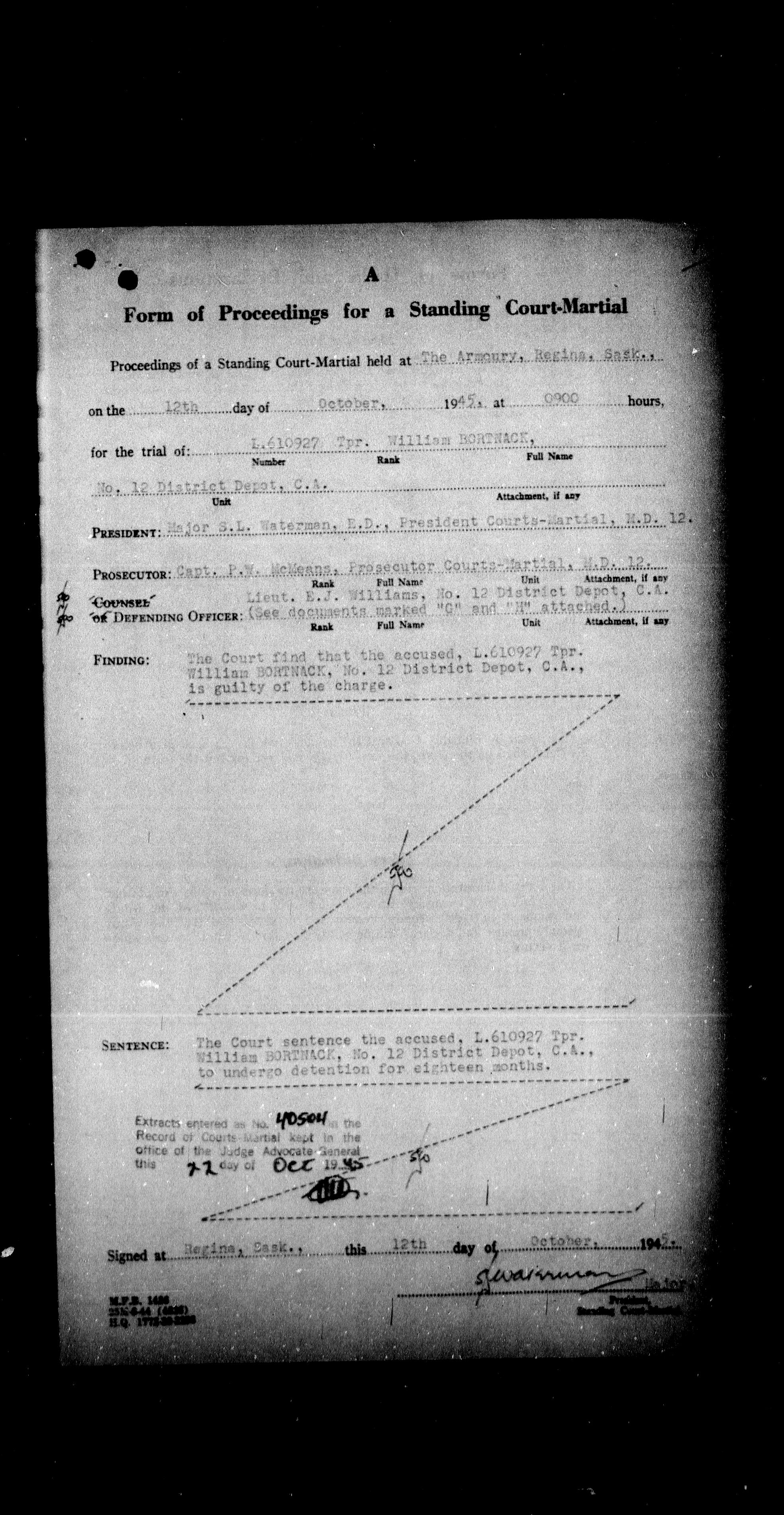 Canadian Army Courts Martial documents (1939-1945) - 15570