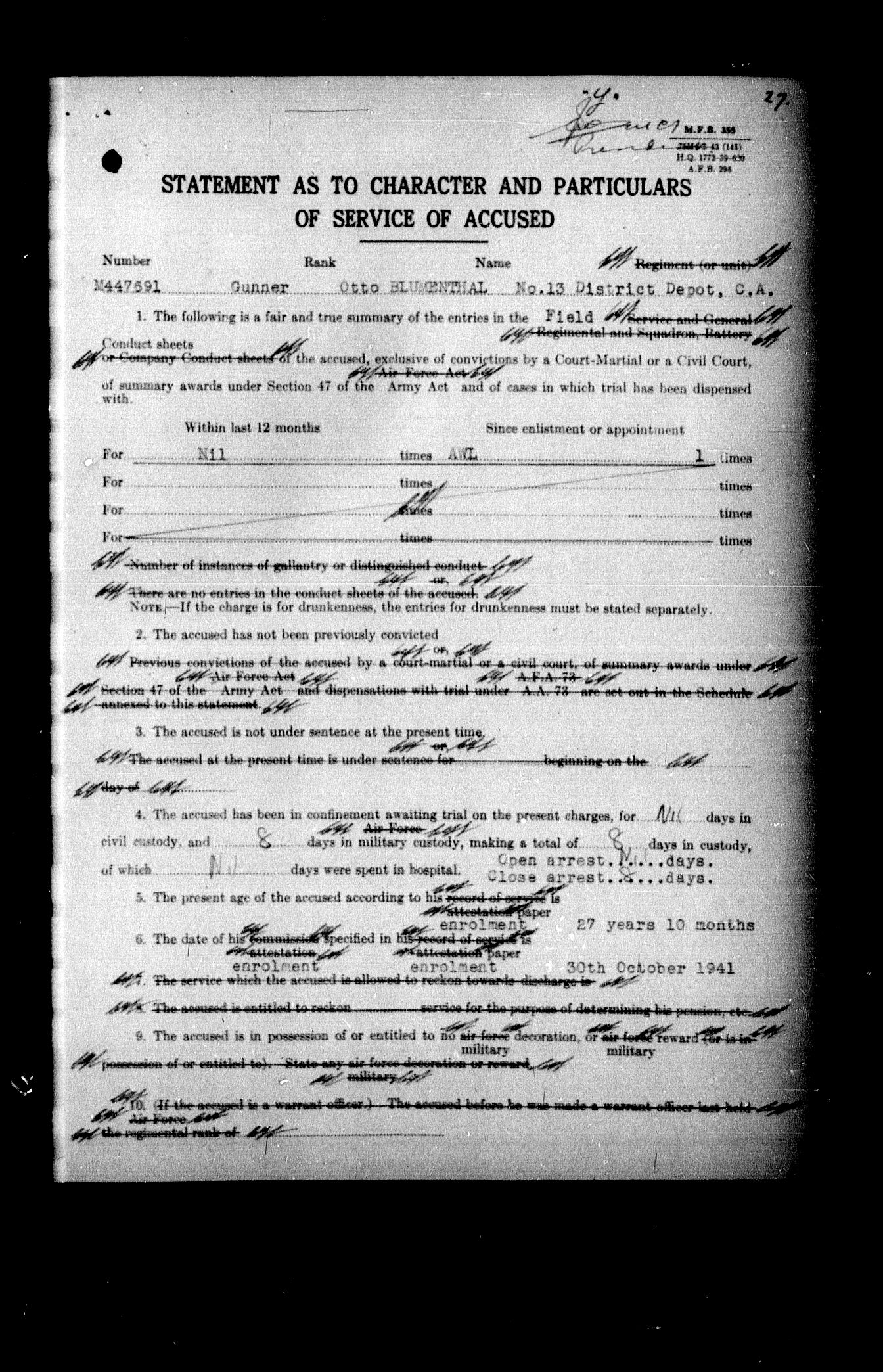Canadian Army Courts Martial documents (1939-1945) - 15571