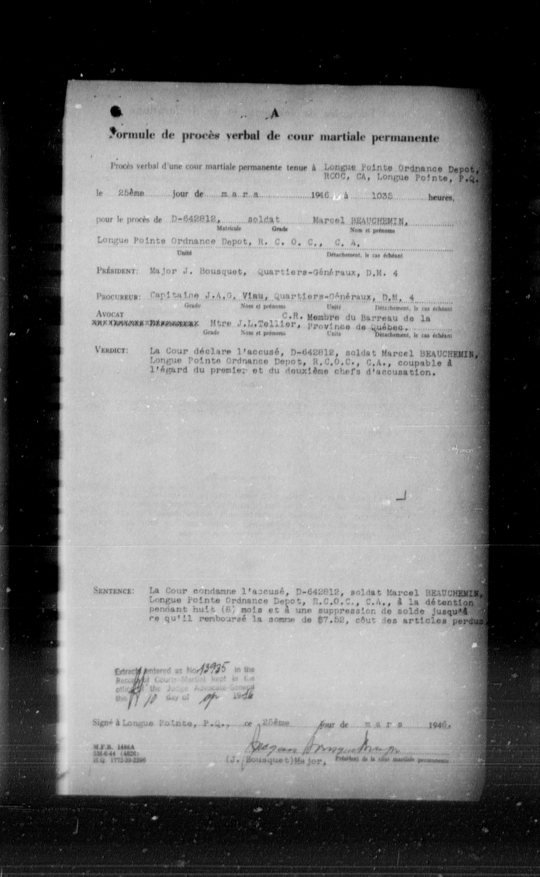 Canadian Army Courts Martial documents (1939-1945) - 15573