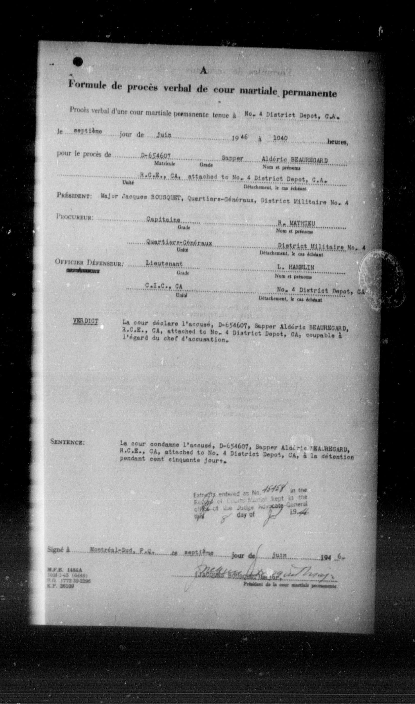 Canadian Army Courts Martial documents (1939-1945) - 15573