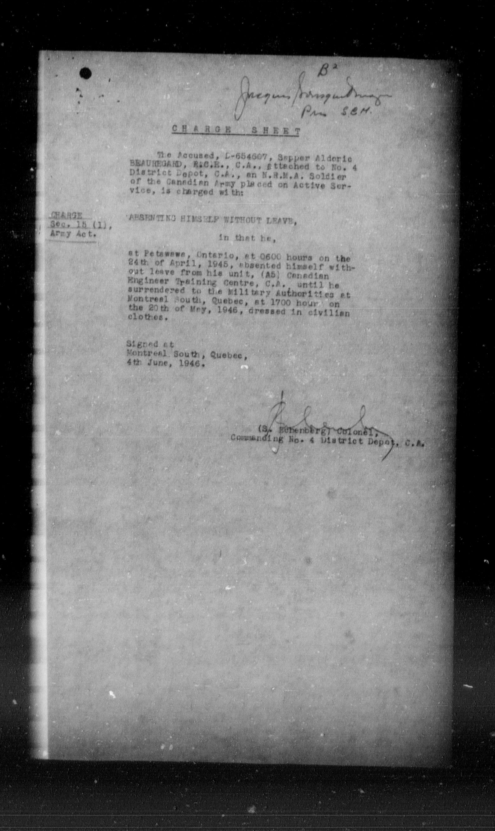 Canadian Army Courts Martial documents (1939-1945) - 15573