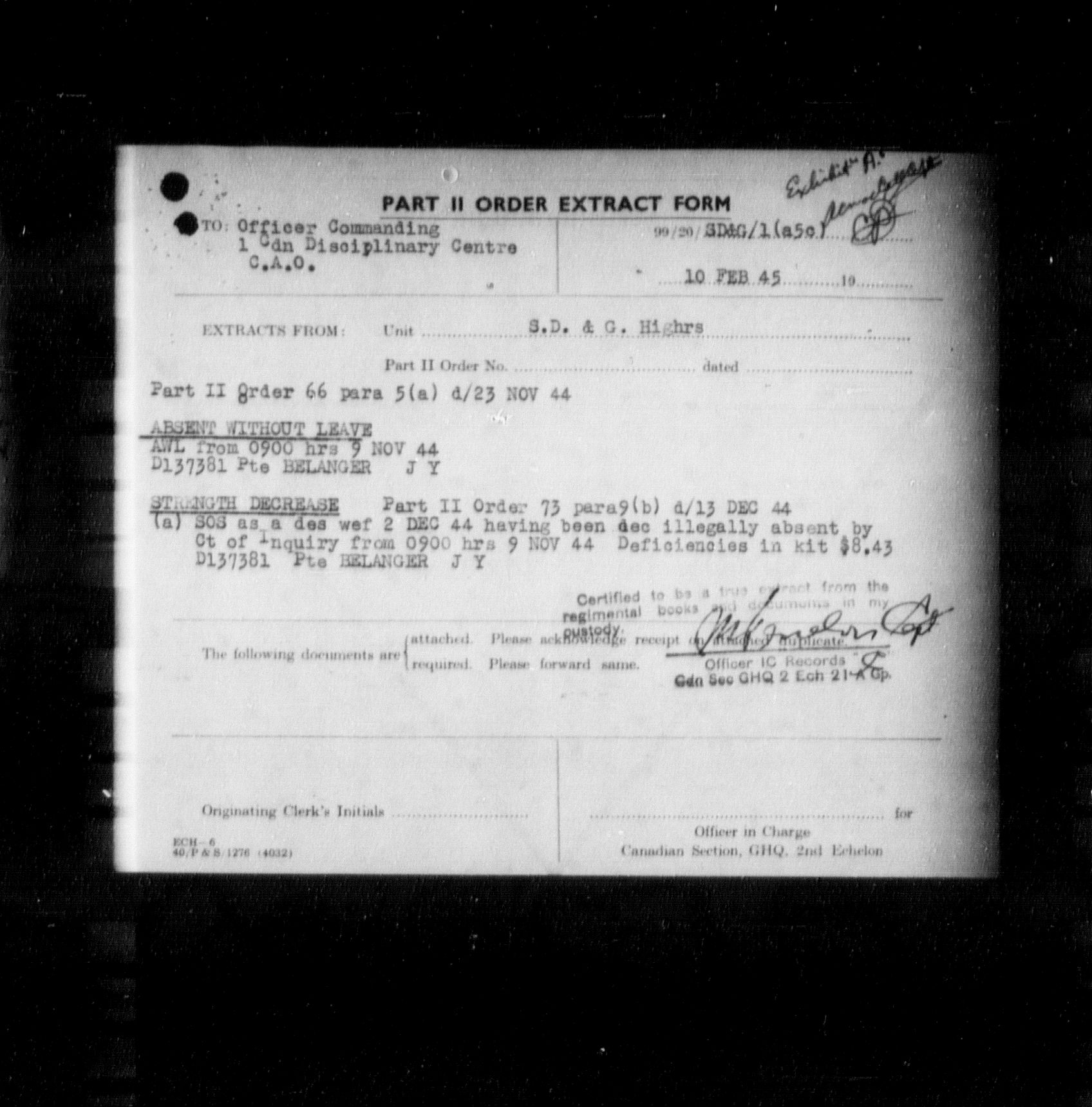 Canadian Army Courts Martial documents (1939-1945) - 15575
