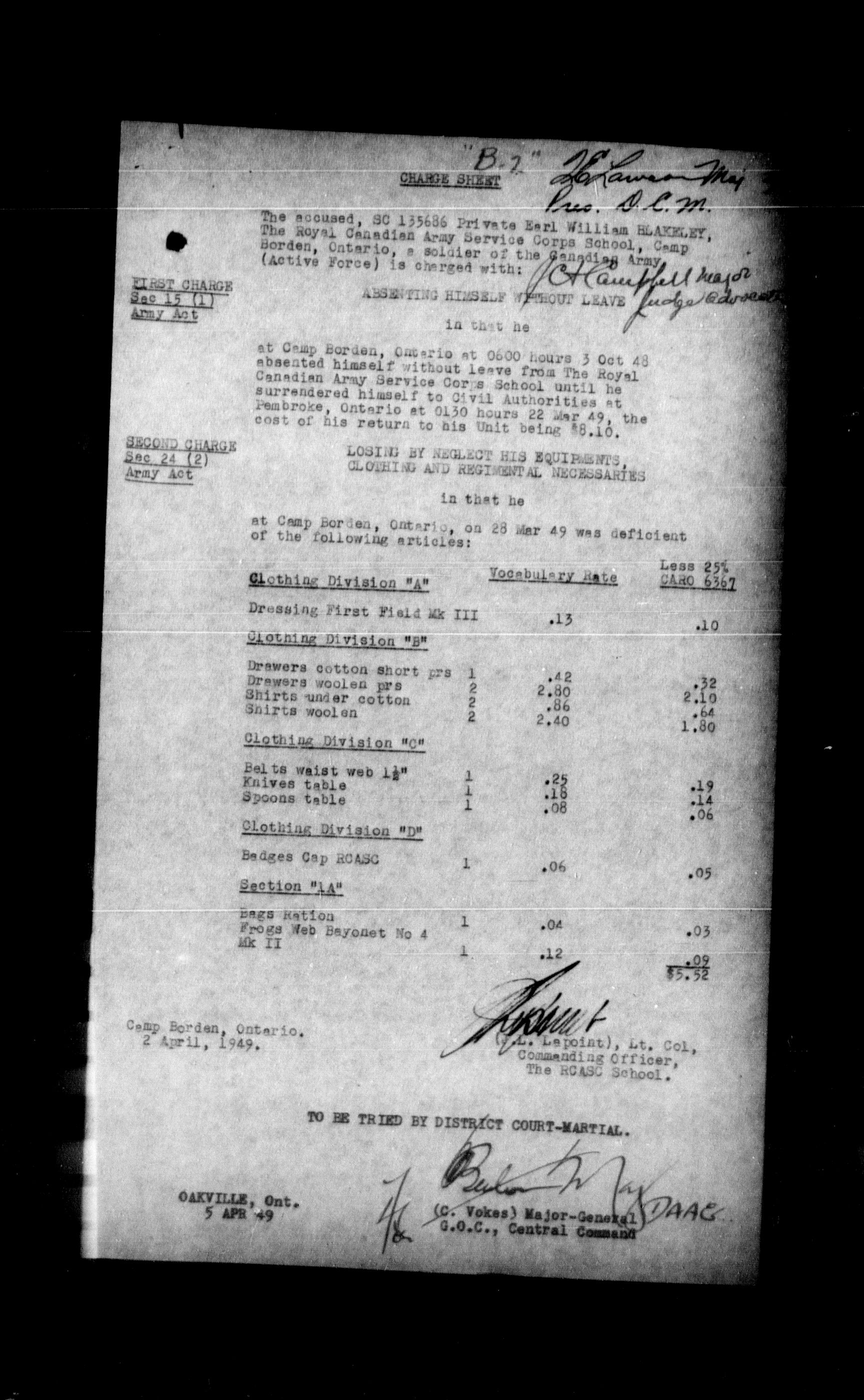 Canadian Army Courts Martial documents (1939-1945) - 15578