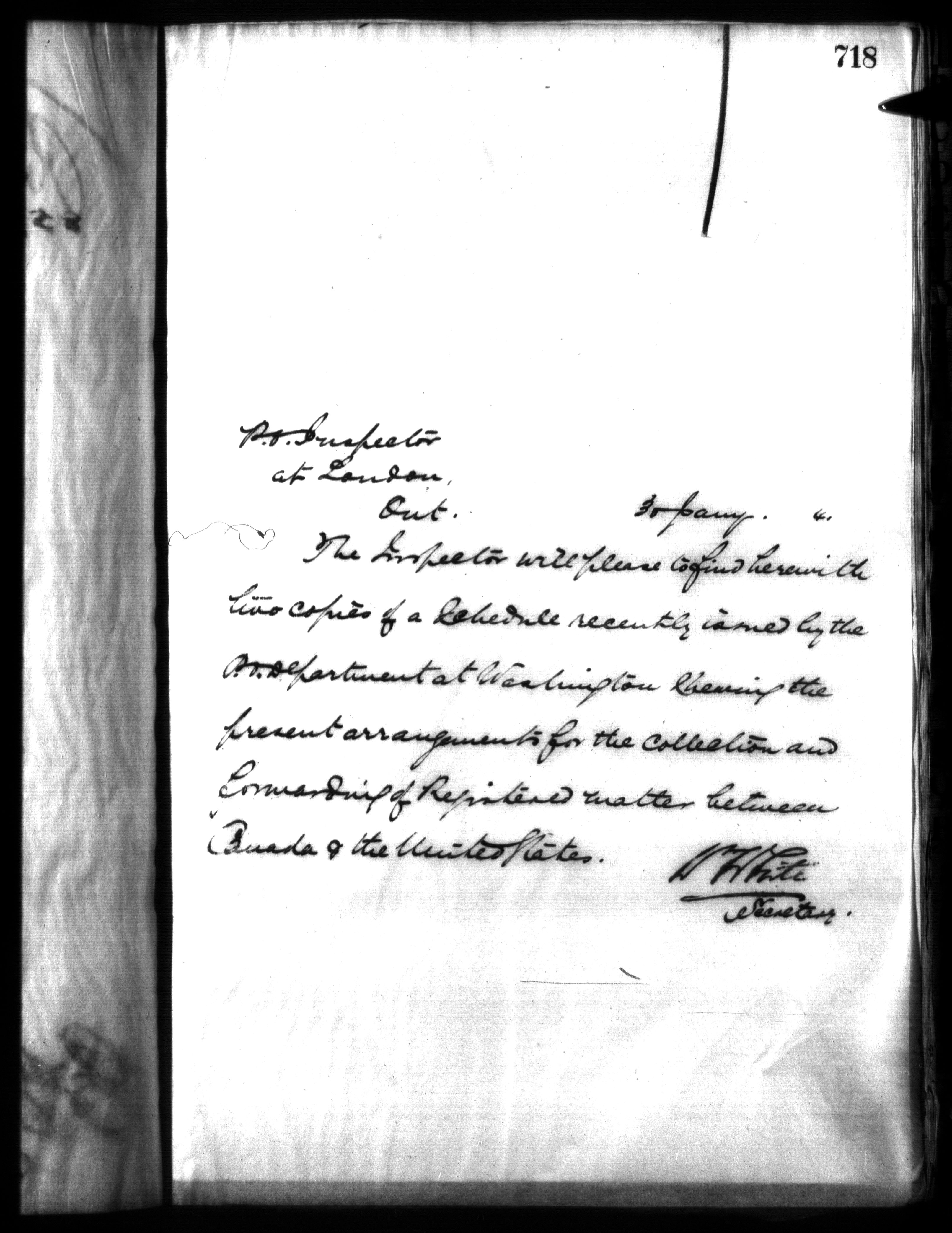 Deputy Postmaster General : correspondence addressed to the Post Office Inspectors, 1851-1902 : T-1558
