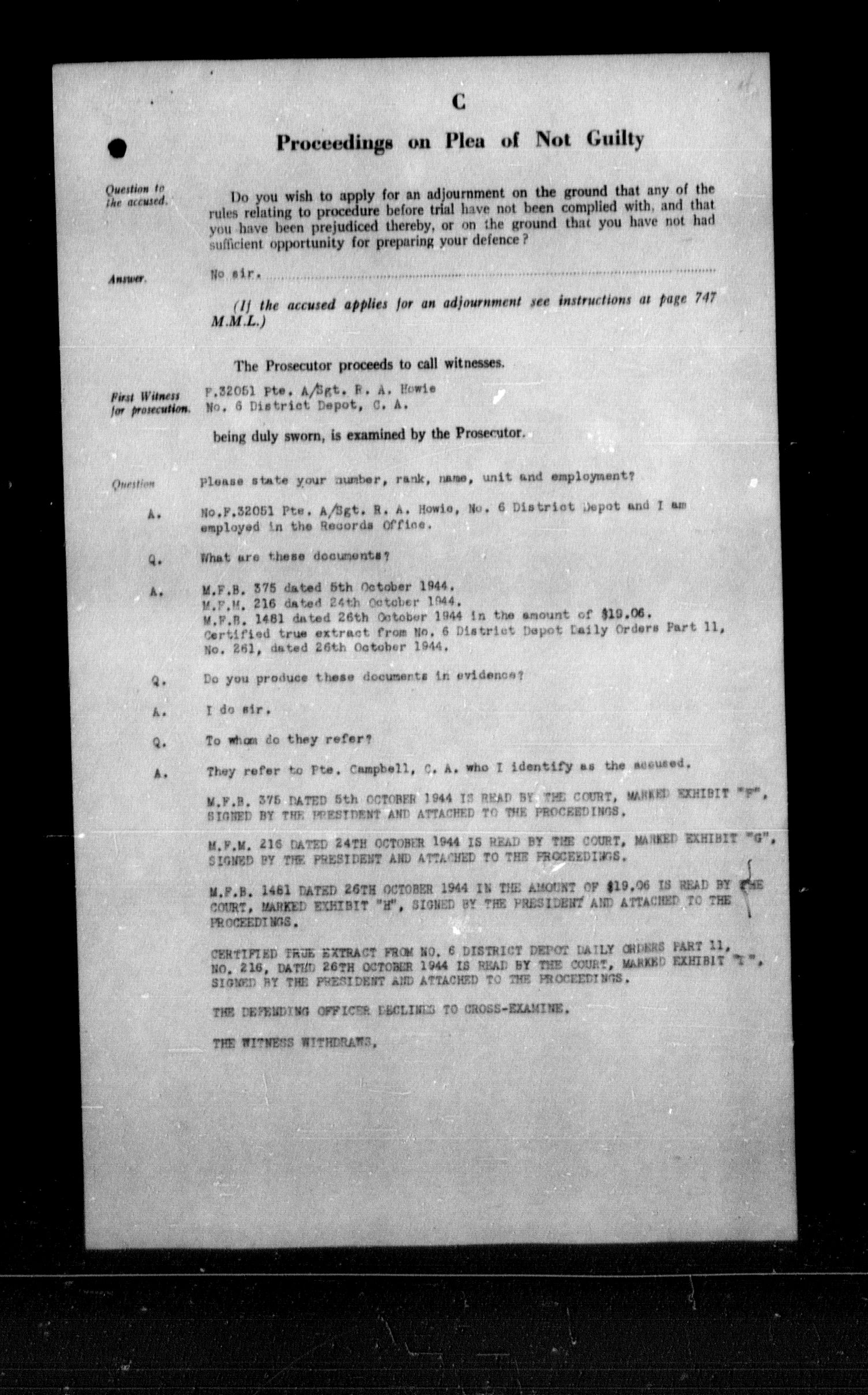 Canadian Army Courts Martial documents (1939-1945) - 15586
