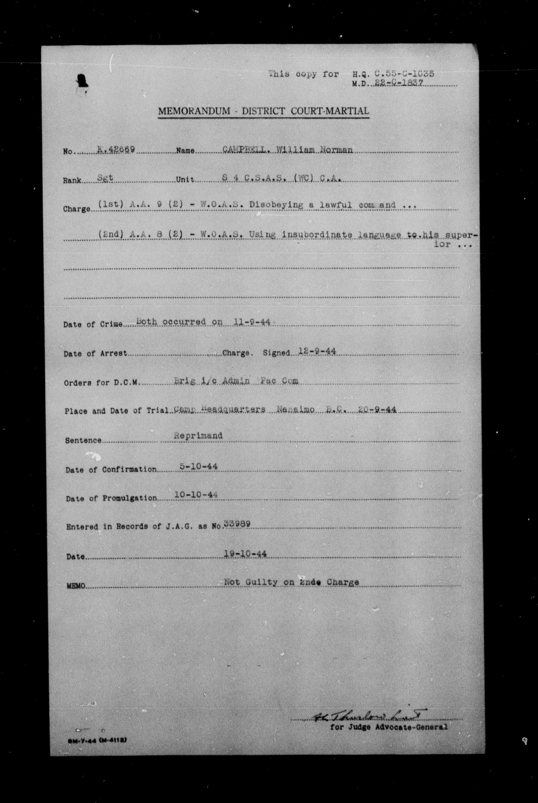 Canadian Army Courts Martial documents (1939-1945) - 15587