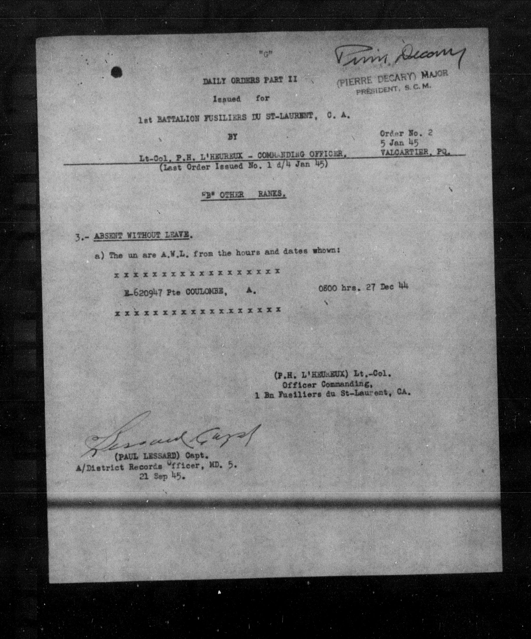 Canadian Army Courts Martial documents (1939-1945) - 15591