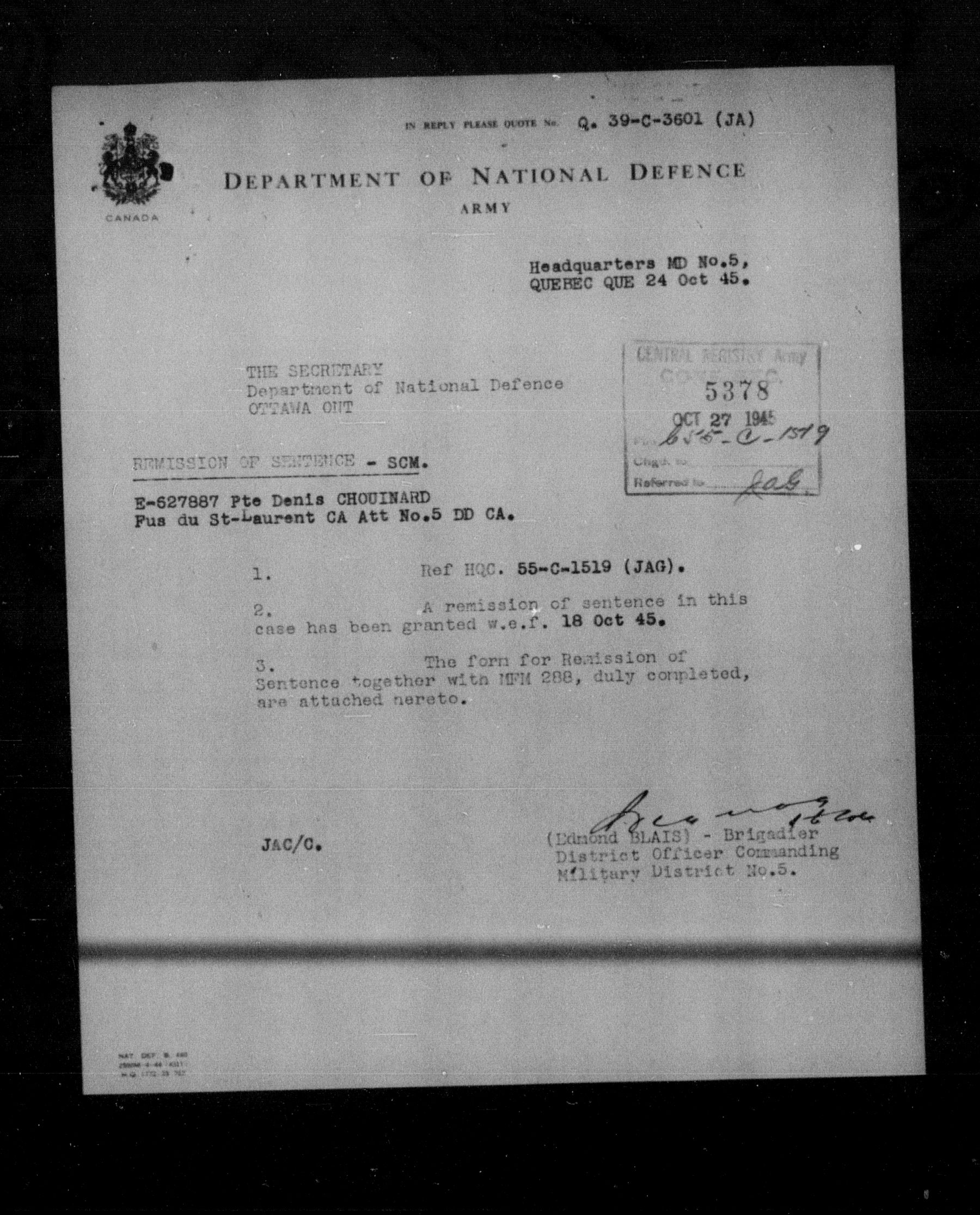 Canadian Army Courts Martial documents (1939-1945) - 15592