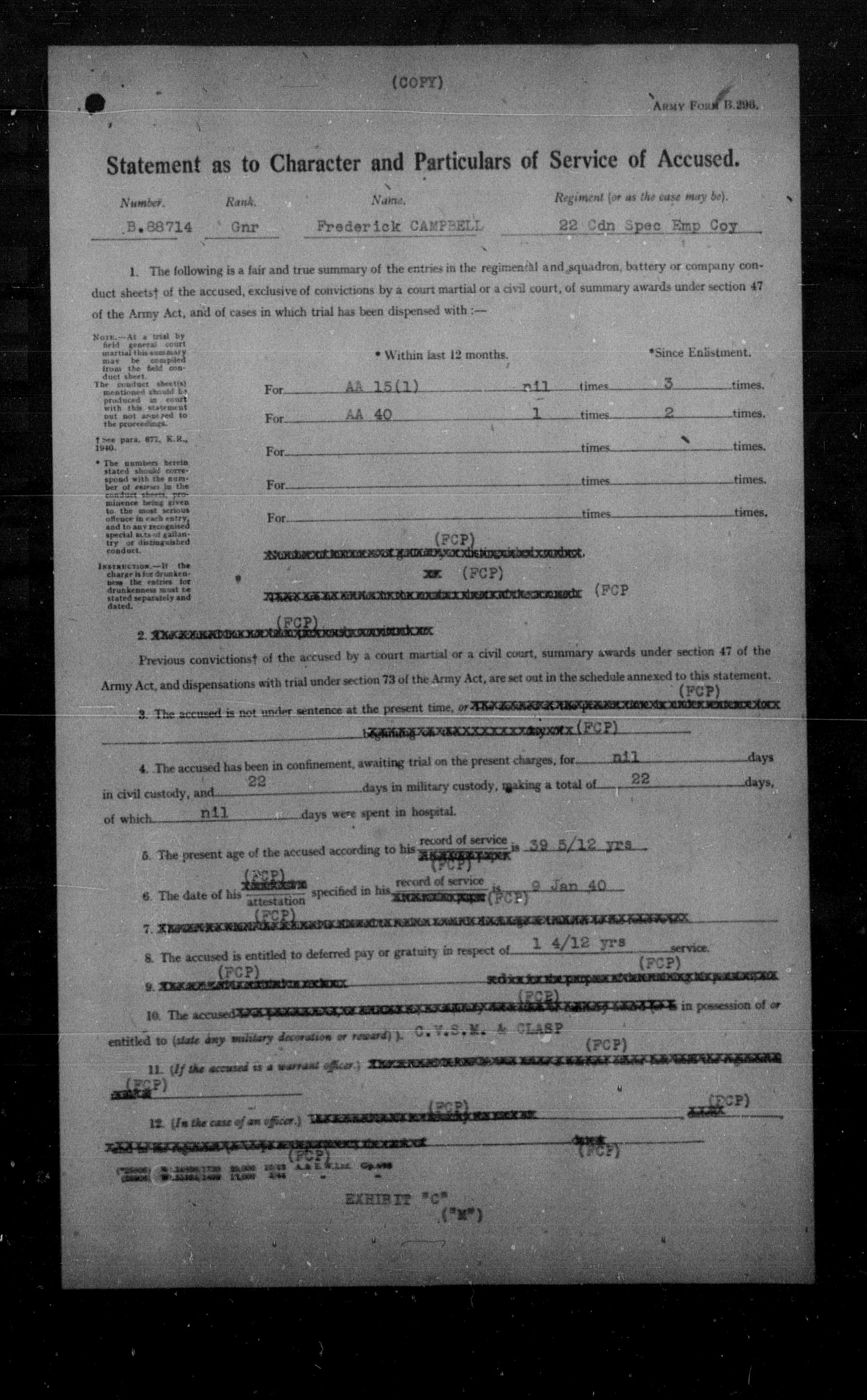 Canadian Army Courts Martial documents (1939-1945) - 15592