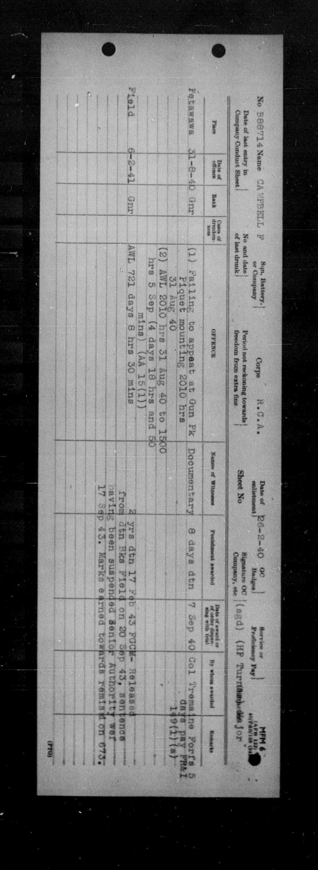 Canadian Army Courts Martial documents (1939-1945) - 15592