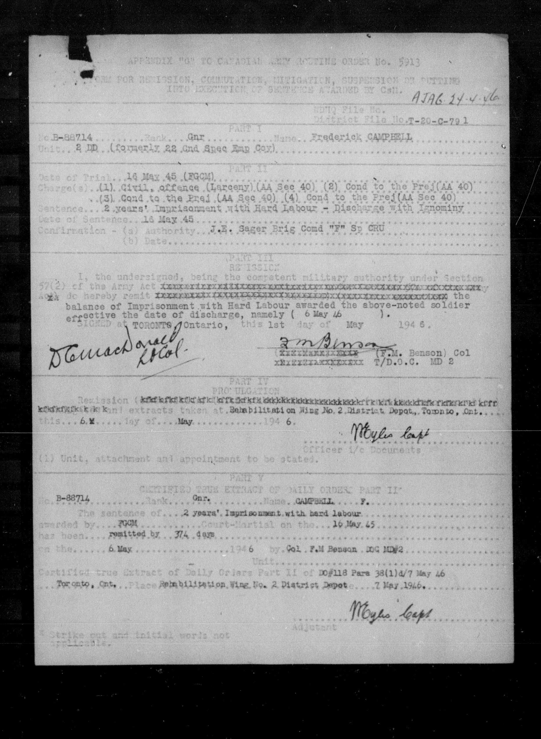 Canadian Army Courts Martial documents (1939-1945) - 15592