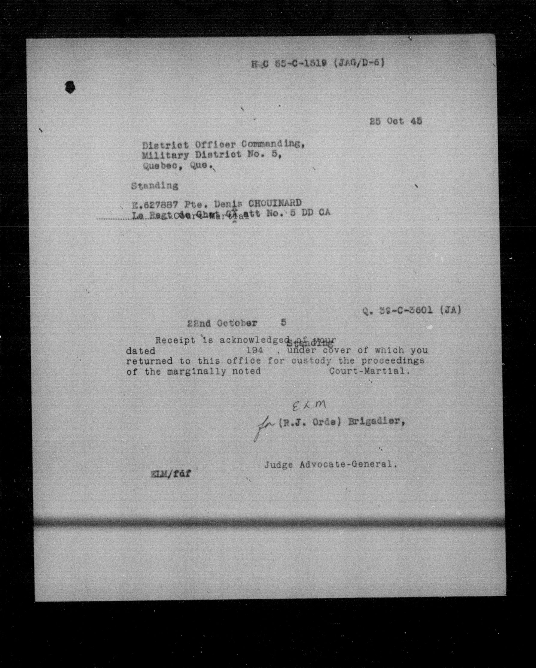 Canadian Army Courts Martial documents (1939-1945) - 15592