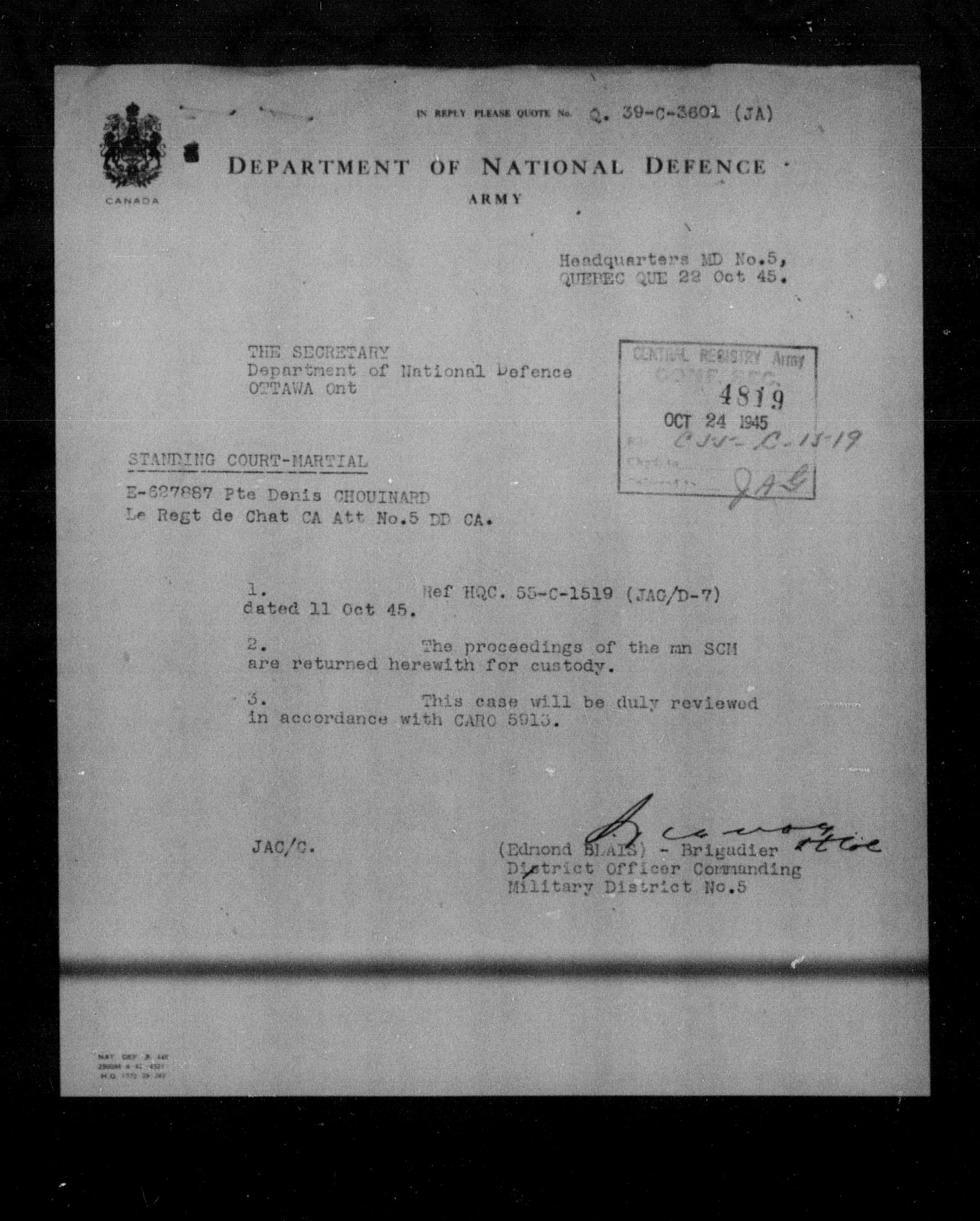 Canadian Army Courts Martial documents (1939-1945) - 15592