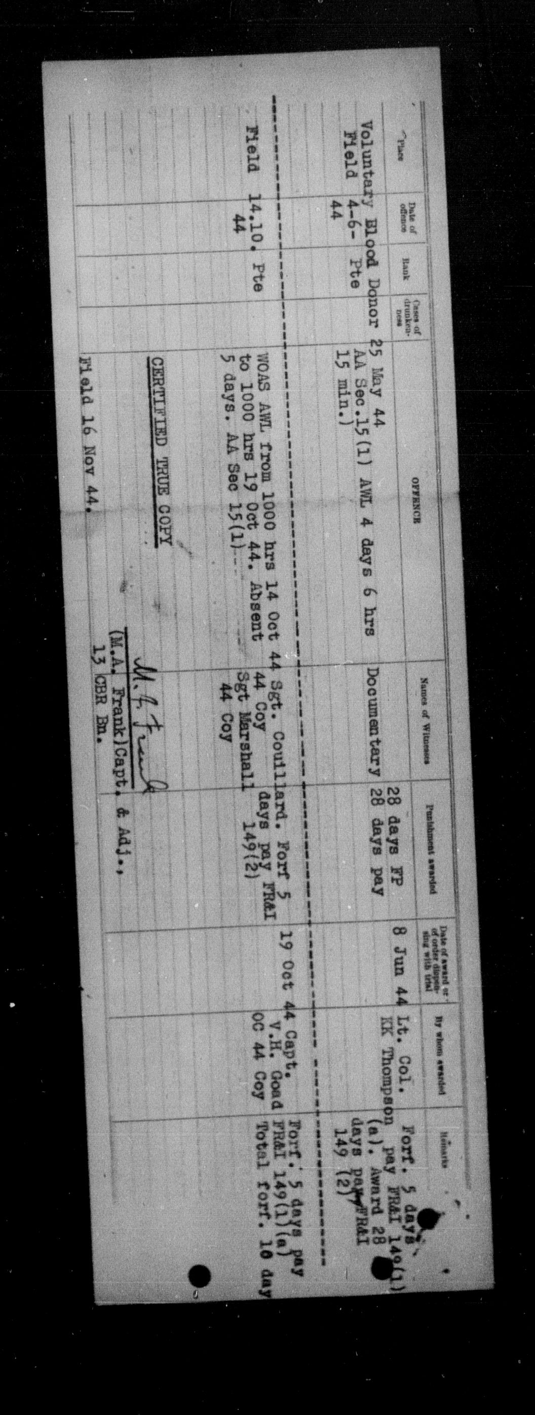 Canadian Army Courts Martial documents (1939-1945) - 15593