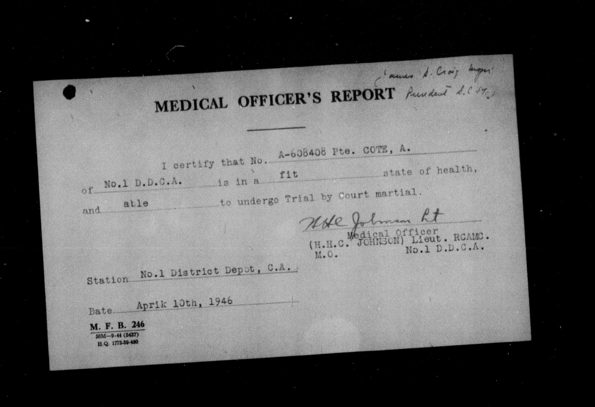 Canadian Army Courts Martial documents (1939-1945) - 15594