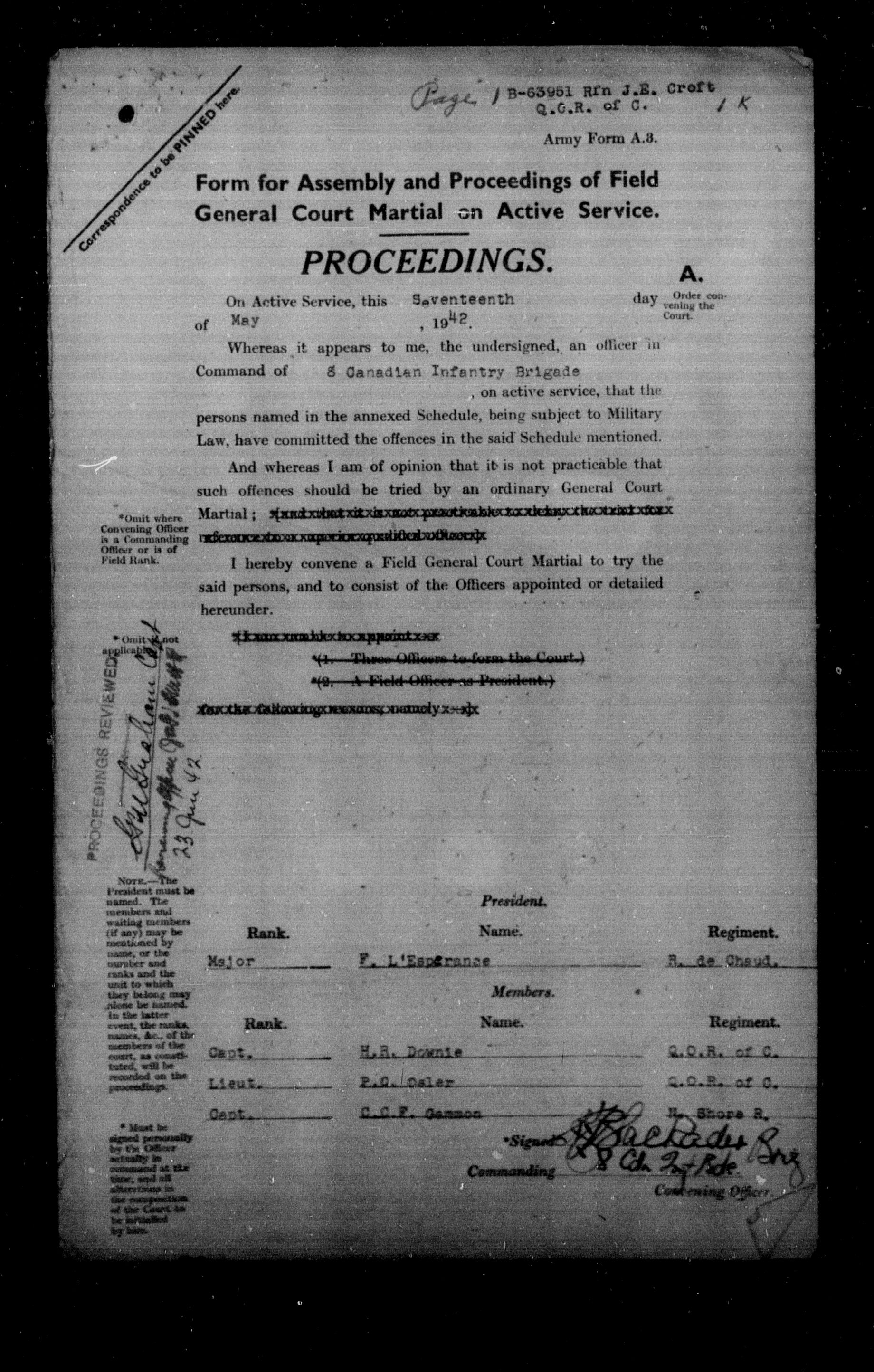 Canadian Army Courts Martial documents (1939-1945) - 15595