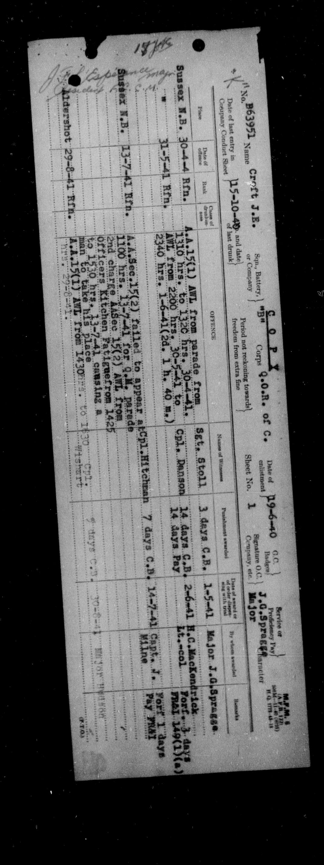 Canadian Army Courts Martial documents (1939-1945) - 15595