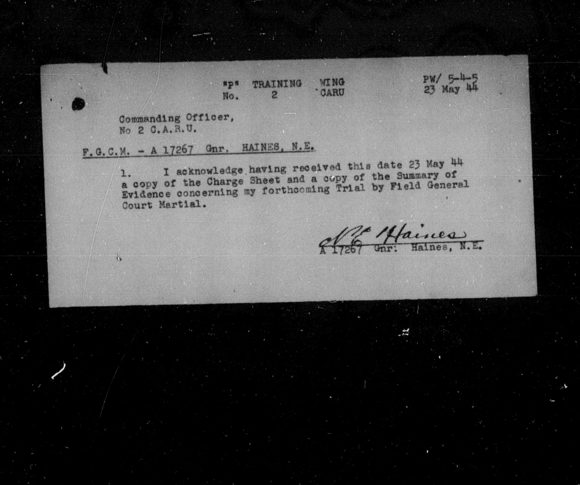 Canadian Army Courts Martial documents (1939-1945) - 15596